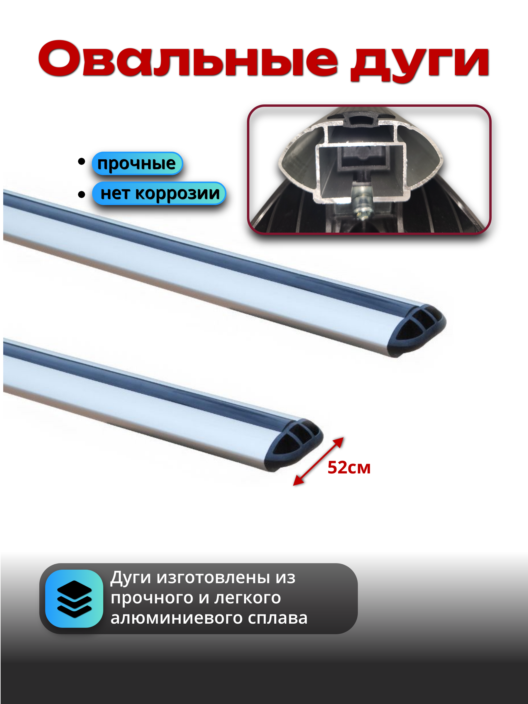 Поперечные перекладины изготовлены из прочного алюминиевого сплава, внутри профиль дуг имеет перемычки для жестки. Опоры прижимаются к крыше через резиновые подкладки, предохраняющие поверхность от механических повреждений при использовании багажника и обеспечивающие идеальное прилегание.