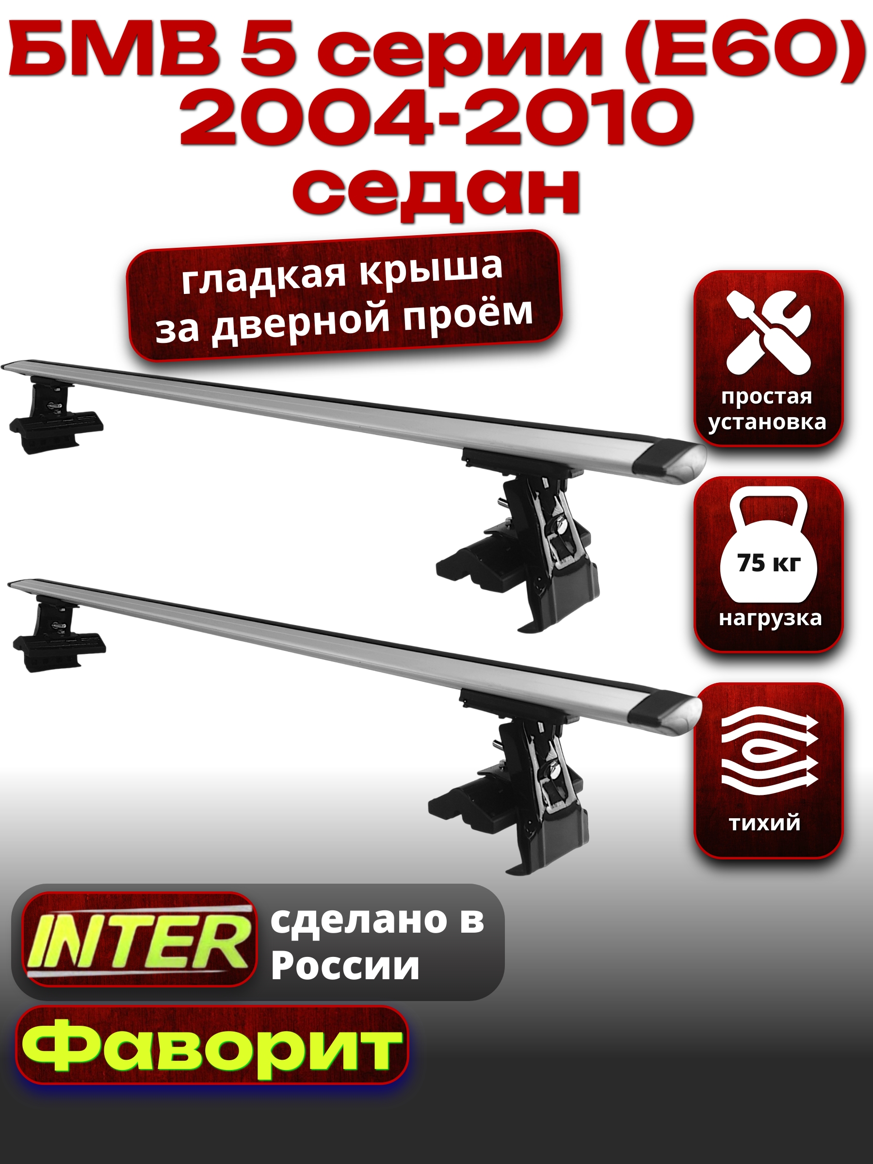 Багажник на крышу INTER D-1 для БМВ 5 серии (Е60) седан 2004-2010 — разработка российского производителя. Если вы подбираете недорогой и качественный багажник для своего автомобиля — это то, что вам необходимо.