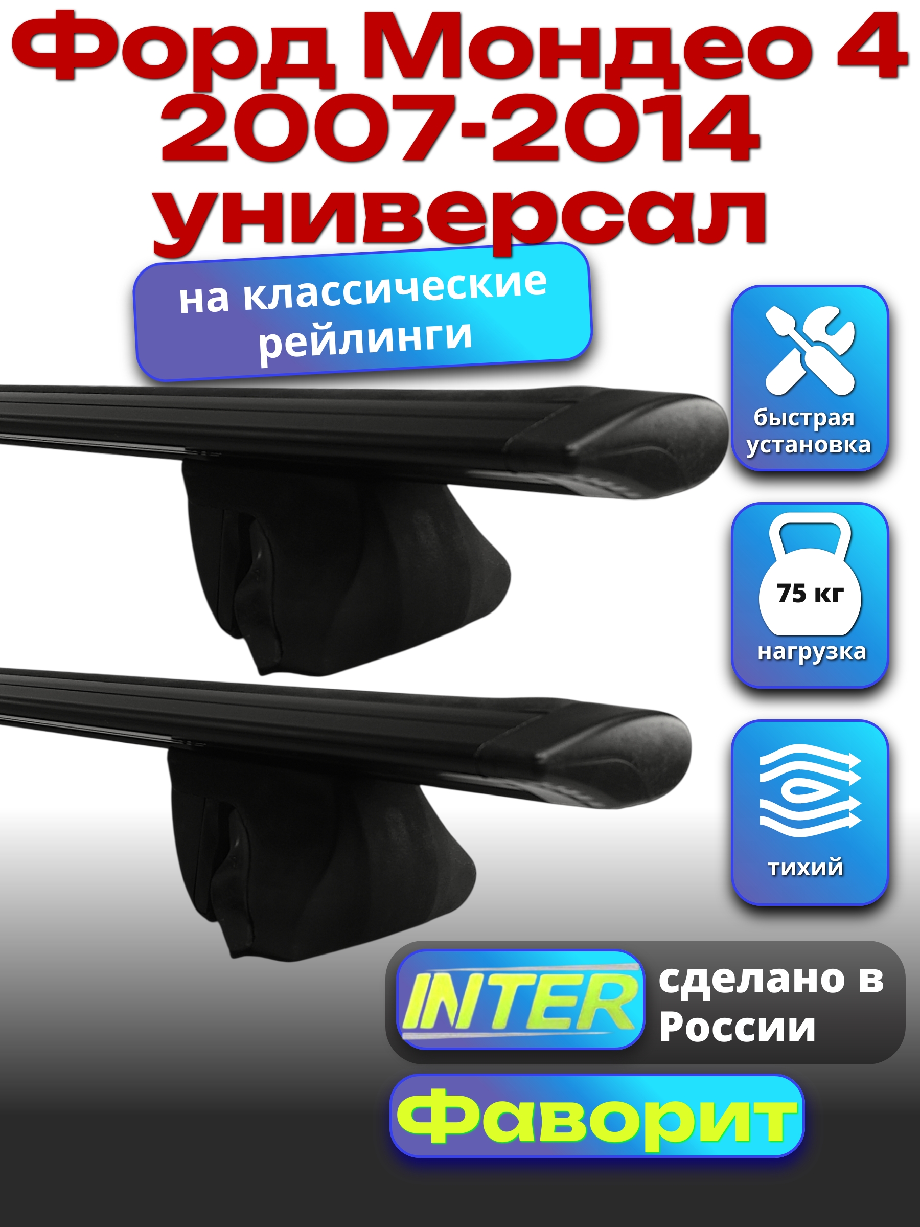 Багажник на крышу INTER Фаворит для Форд Мондео 4 2007-2014 универсал — разработка российского производителя. Если вы подбираете недорогой и качественный багажник для своего автомобиля — это то, что вам необходимо.