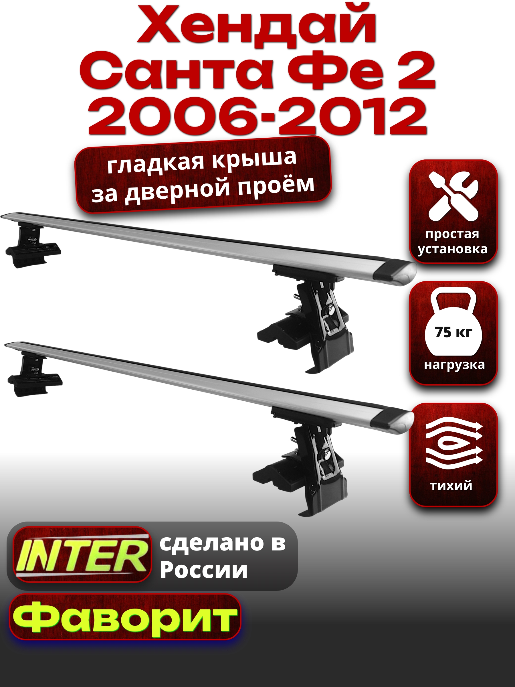 Багажник на крышу INTER D-1 для Хендай Санта Фе 2 2006-2012 (без рейлингов) — разработка российского производителя. Если вы подбираете недорогой и качественный багажник для своего автомобиля — это то, что вам необходимо.