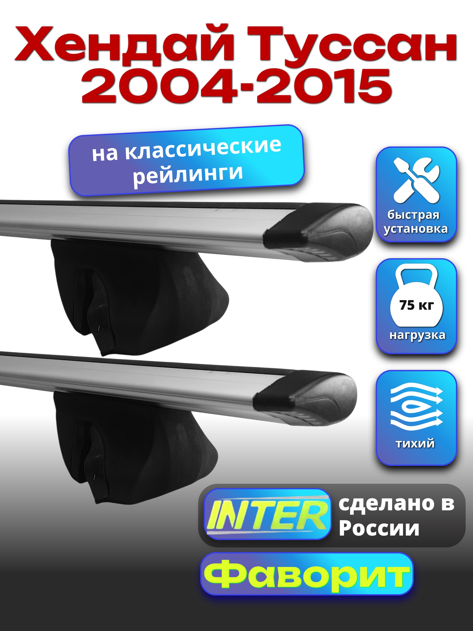 Багажник на крышу INTER Фаворит для Хендай Туссан 2004-2015 — разработка российского производителя. Если вы подбираете недорогой и качественный багажник для своего автомобиля — это то, что вам необходимо.