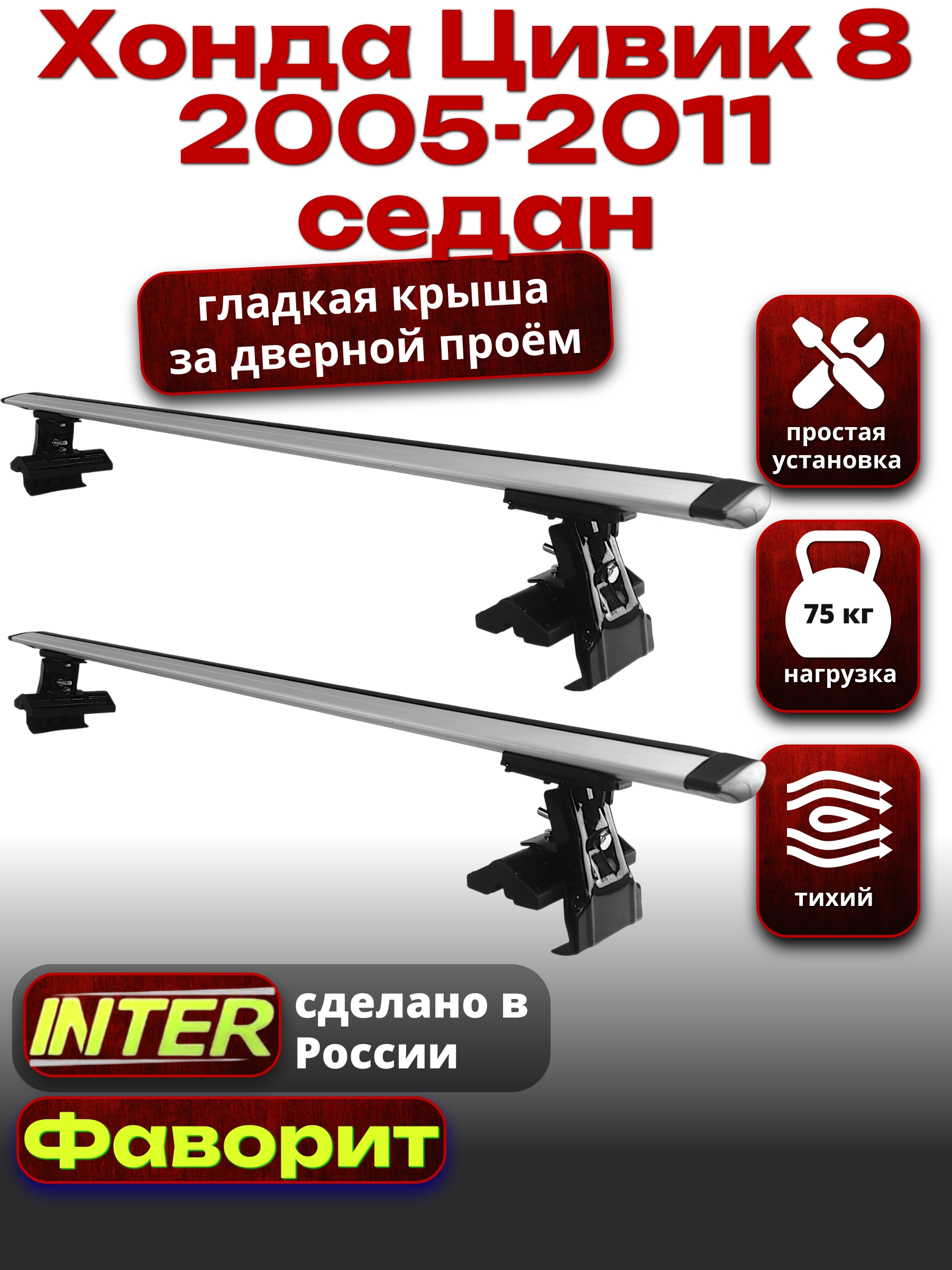 Багажник на крышу INTER D-1 для Хонда Цивик 8 седан 2005-2011 — разработка российского производителя. Если вы подбираете недорогой и качественный багажник для своего автомобиля — это то, что вам необходимо.