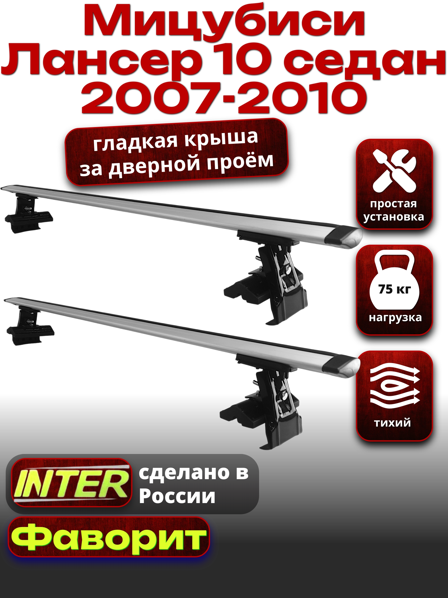 Багажник на крышу INTER D-1 для Мицубиси Лансер 10 седан 2007-2010 — разработка российского производителя. Если вы подбираете недорогой и качественный багажник для своего автомобиля — это то, что вам необходимо.