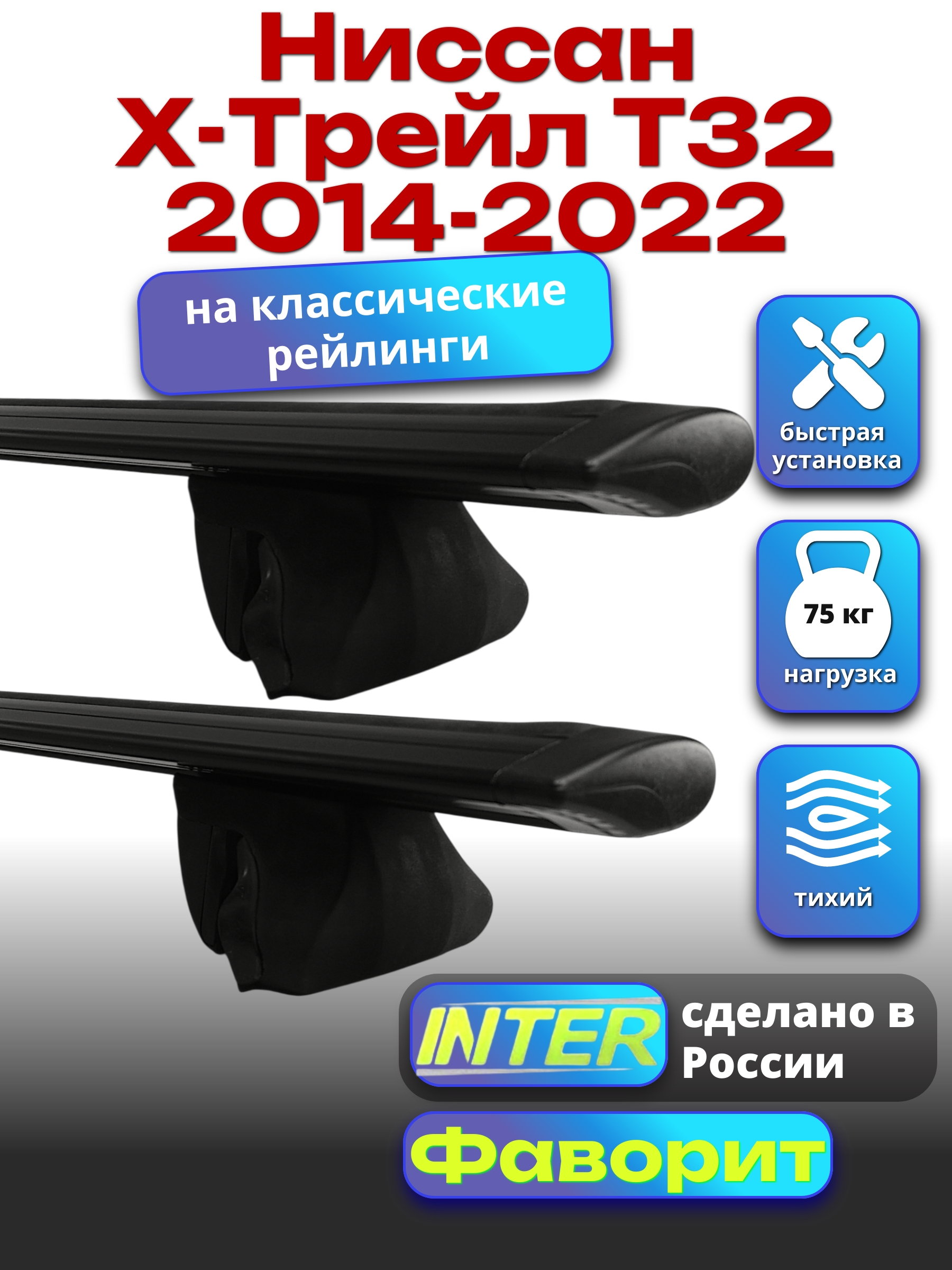 Багажник на крышу INTER Фаворит для Ниссан Х-Трейл Т32 2014-2022 — разработка российского производителя. Если вы подбираете недорогой и качественный багажник для своего автомобиля — это то, что вам необходимо.