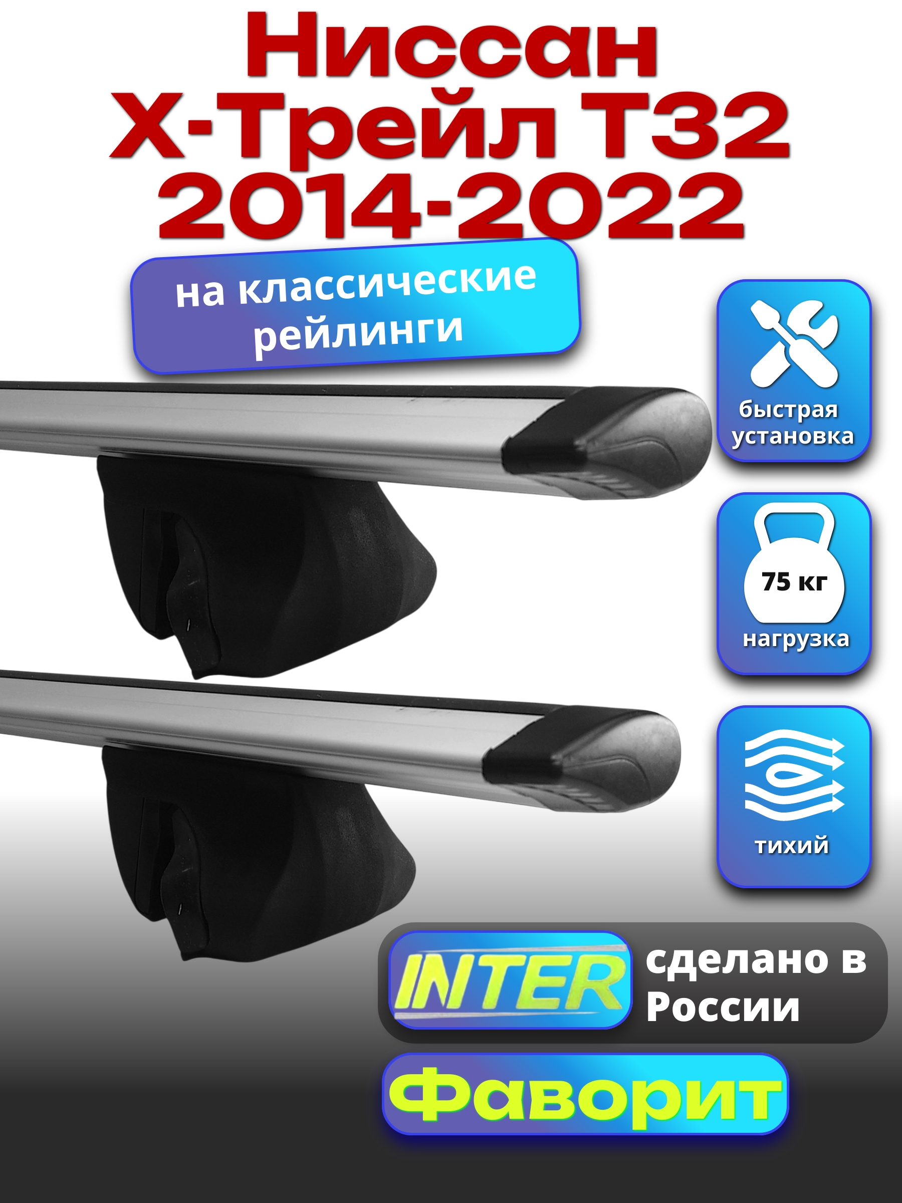 Багажник на крышу INTER Фаворит для Ниссан Х-Трейл Т32 2014-2022 — разработка российского производителя. Если вы подбираете недорогой и качественный багажник для своего автомобиля — это то, что вам необходимо.