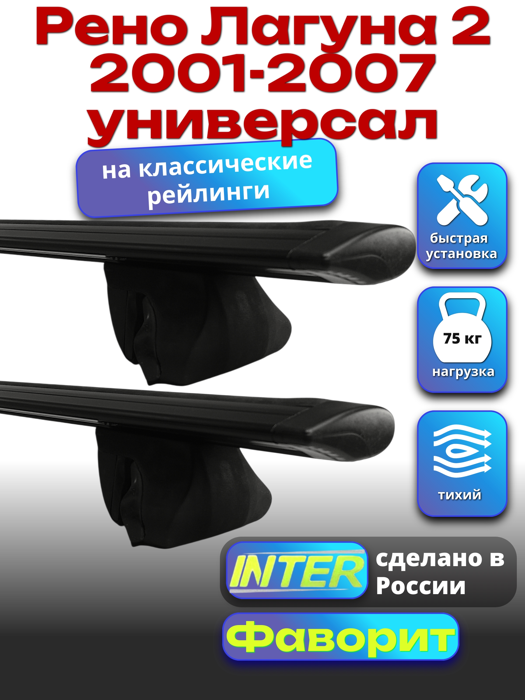 Багажник на крышу INTER Фаворит для Рено Лагуна 2 2001-2007 универсал — разработка российского производителя. Если вы подбираете недорогой и качественный багажник для своего автомобиля — это то, что вам необходимо.