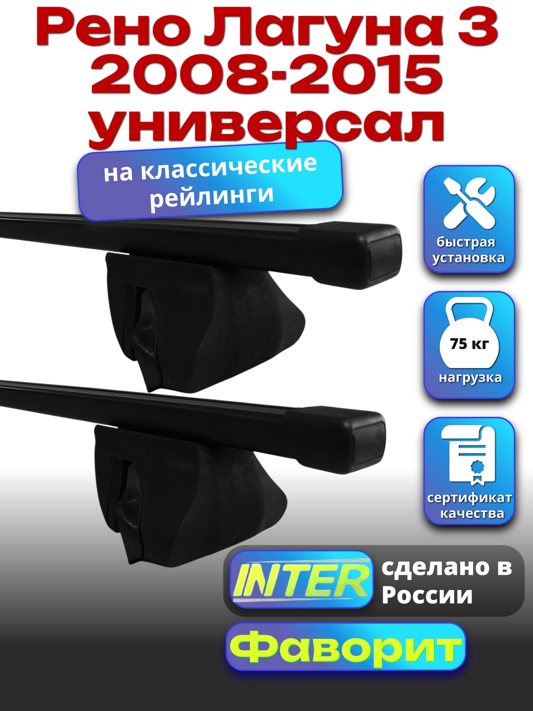 Багажник на крышу INTER Фаворит для Рено Лагуна 3 2008-2015 универсал — разработка российского производителя. Если вы подбираете недорогой и качественный багажник для своего автомобиля — это то, что вам необходимо.