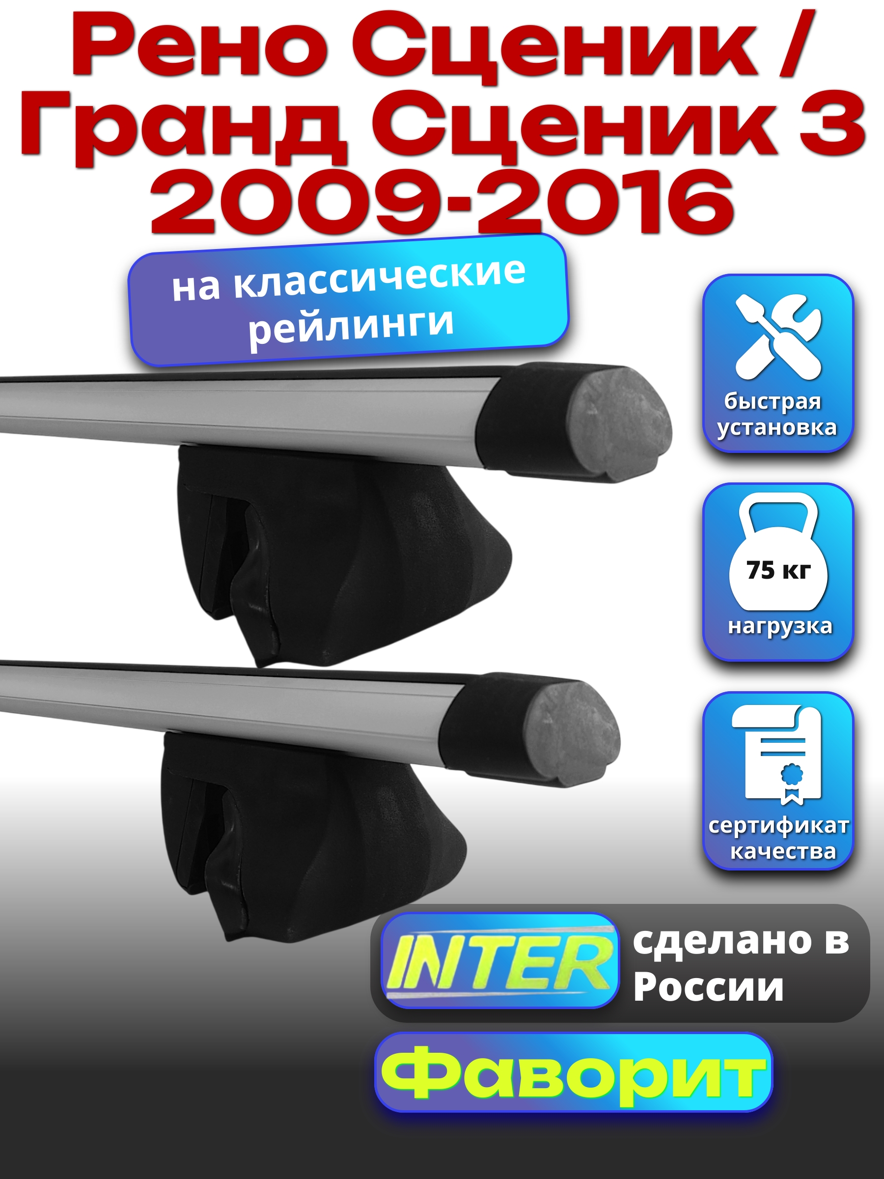 Багажник на крышу INTER Фаворит для Рено Сценик / Гранд Сценик 3 2009-2016 — разработка российского производителя. Если вы подбираете недорогой и качественный багажник для своего автомобиля — это то, что вам необходимо.