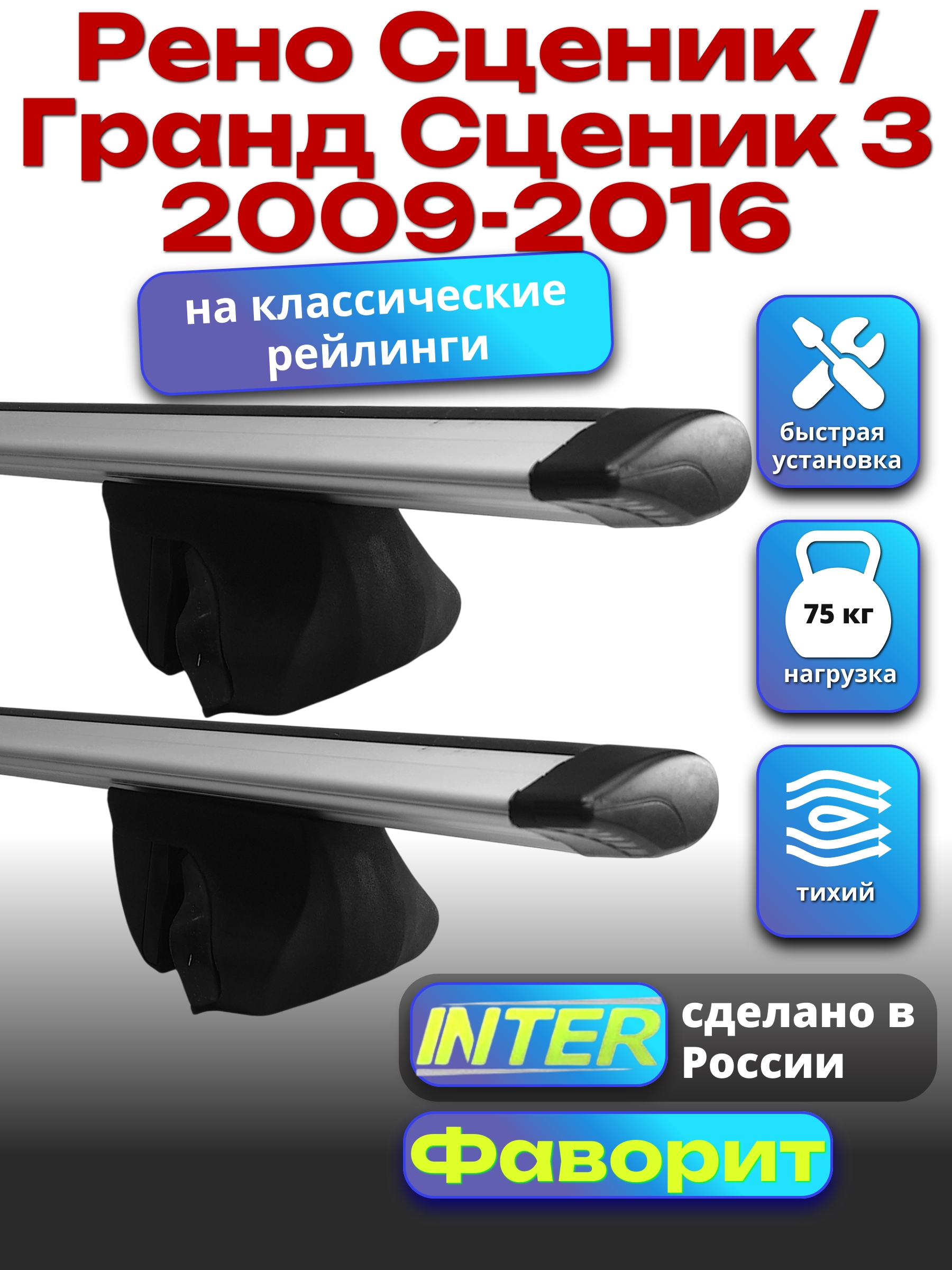 Багажник на крышу INTER Фаворит для Рено Сценик / Гранд Сценик 3 2009-2016 — разработка российского производителя. Если вы подбираете недорогой и качественный багажник для своего автомобиля — это то, что вам необходимо.