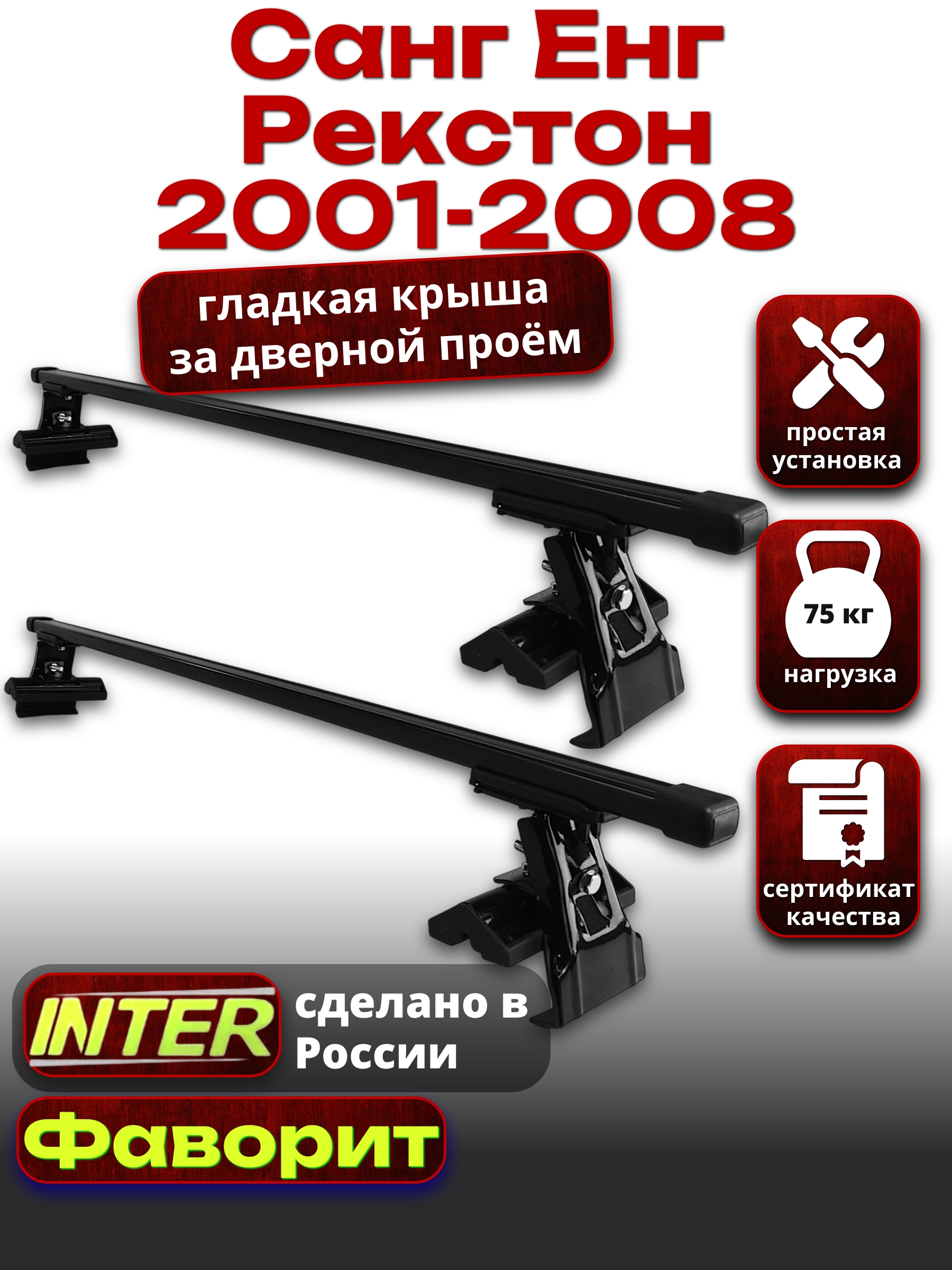 Багажник на крышу INTER D-1 для Санг Енг Рекстон 2001-2008 — разработка российского производителя. Если вы подбираете недорогой и качественный багажник для своего автомобиля — это то, что вам необходимо.