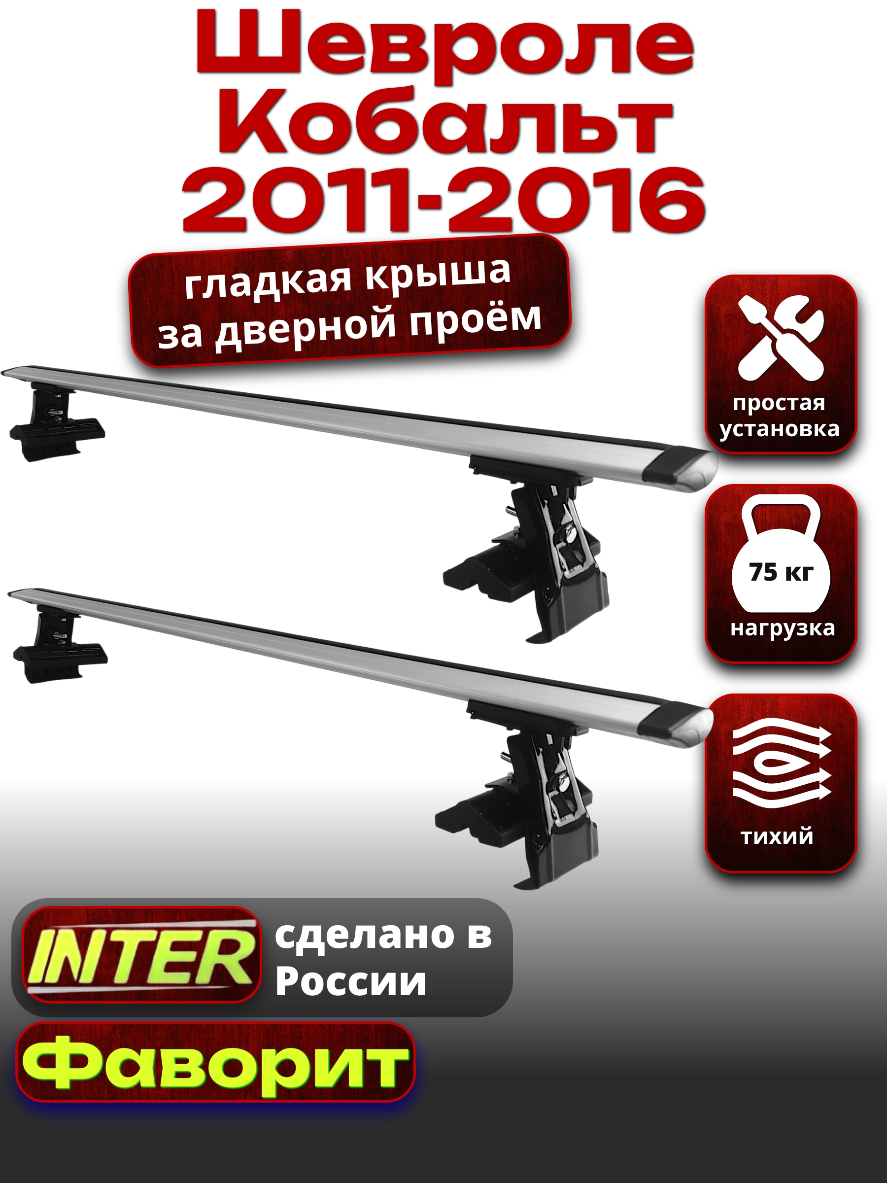Багажник на крышу INTER D-1 для Шевроле Кобальт 2011-2016 — разработка российского производителя. Если вы подбираете недорогой и качественный багажник для своего автомобиля — это то, что вам необходимо.
