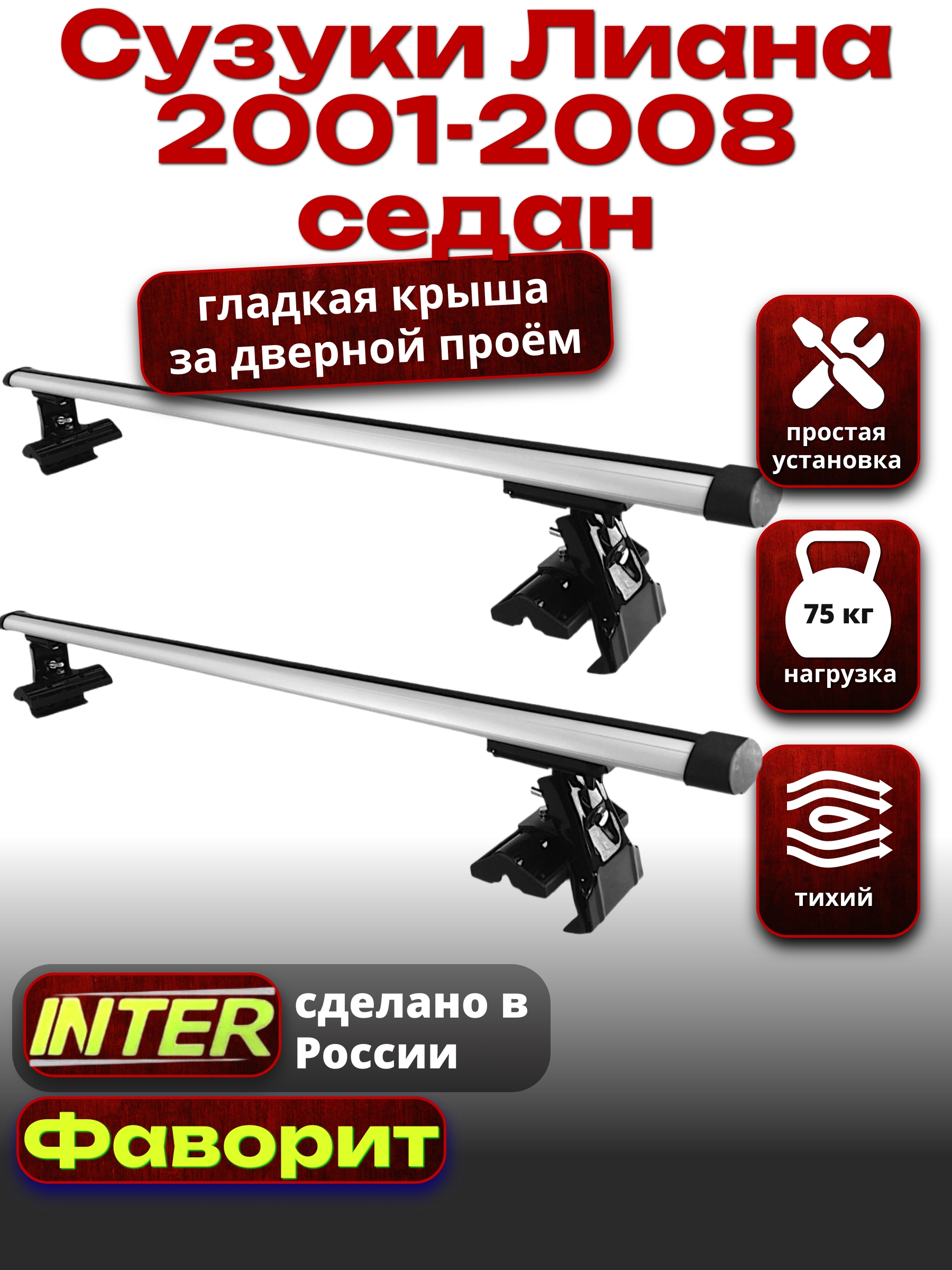 Багажник на крышу INTER D-1 для Сузуки Лиана седан 2001-2008 — разработка российского производителя. Если вы подбираете недорогой и качественный багажник для своего автомобиля — это то, что вам необходимо.