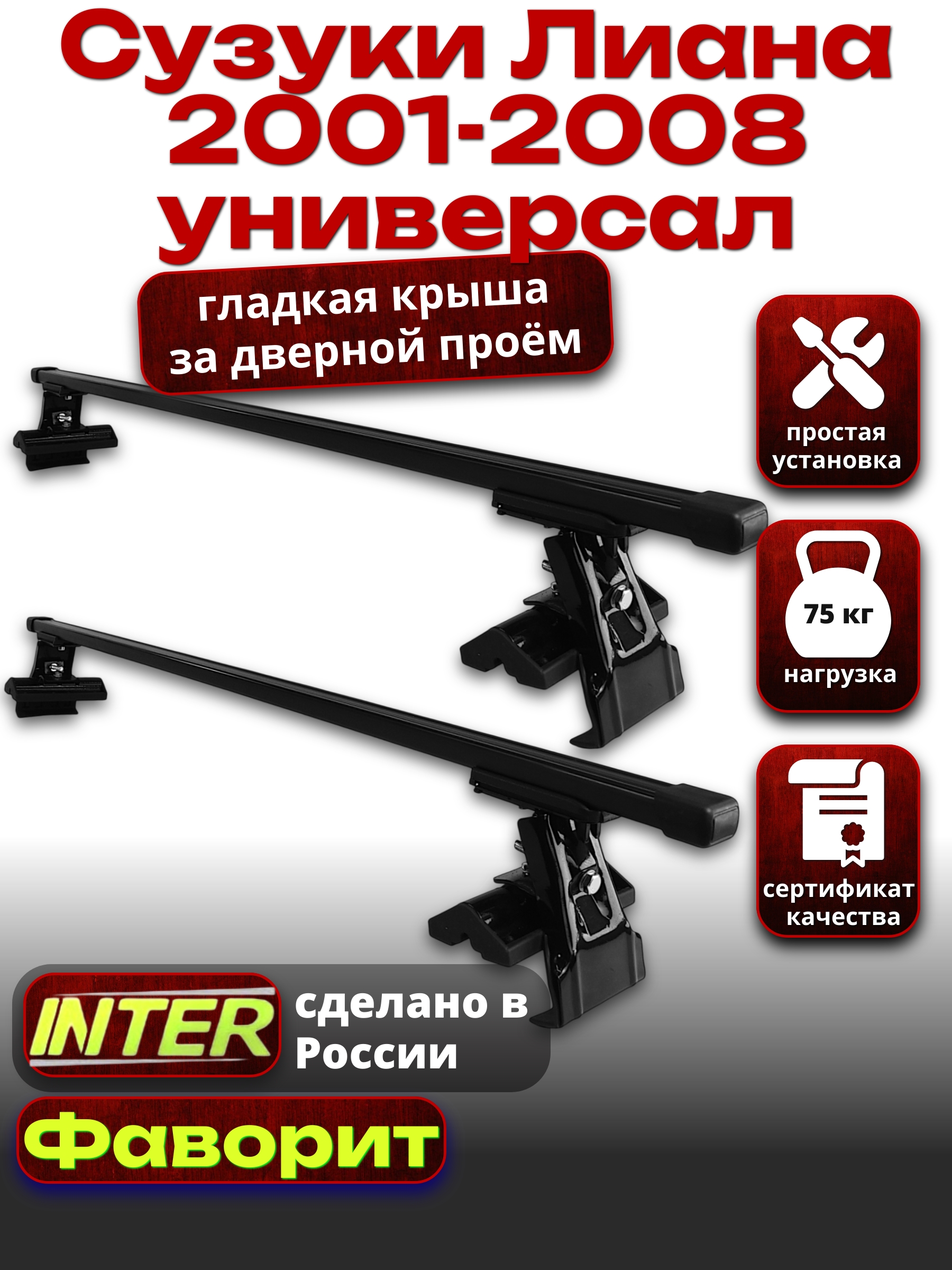 Багажник на крышу INTER D-1 для Сузуки Лиана универсал 2001-2008 — разработка российского производителя. Если вы подбираете недорогой и качественный багажник для своего автомобиля — это то, что вам необходимо.
