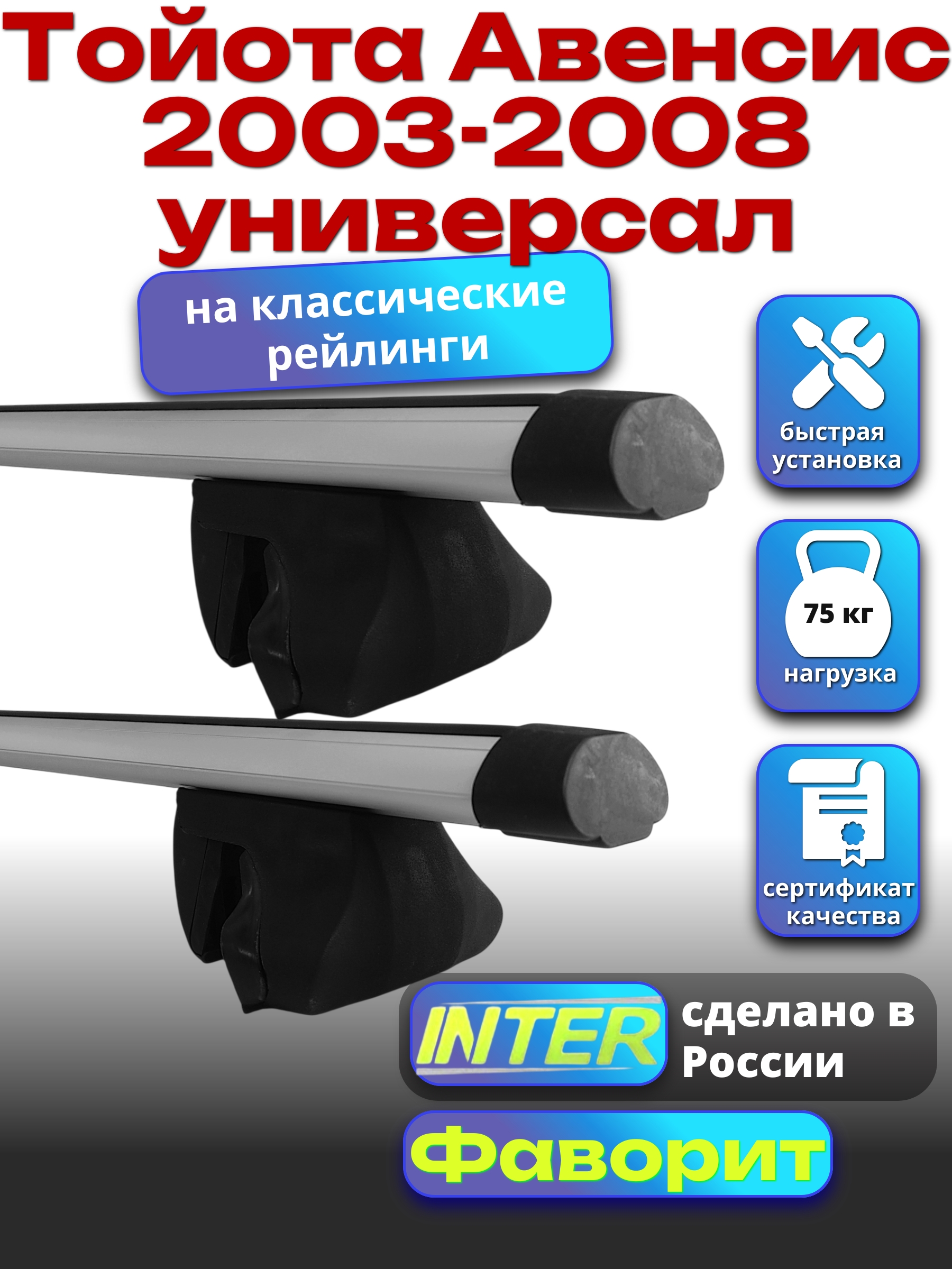 Багажник на крышу INTER Фаворит для Тойота Авенсис 2003-2008 универсал — разработка российского производителя. Если вы подбираете недорогой и качественный багажник для своего автомобиля — это то, что вам необходимо.