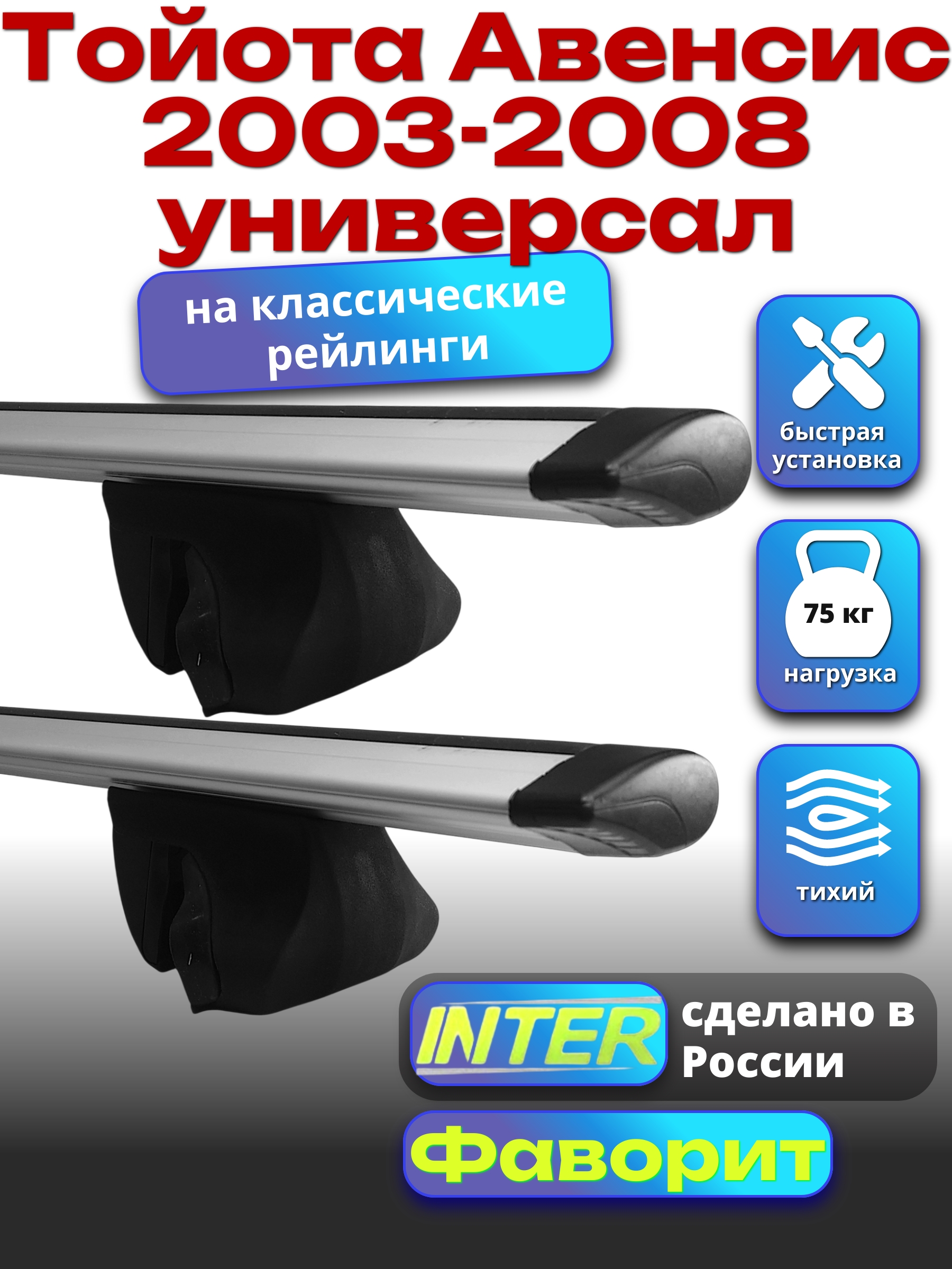 Багажник на крышу INTER Фаворит для Тойота Авенсис 2003-2008 универсал — разработка российского производителя. Если вы подбираете недорогой и качественный багажник для своего автомобиля — это то, что вам необходимо.