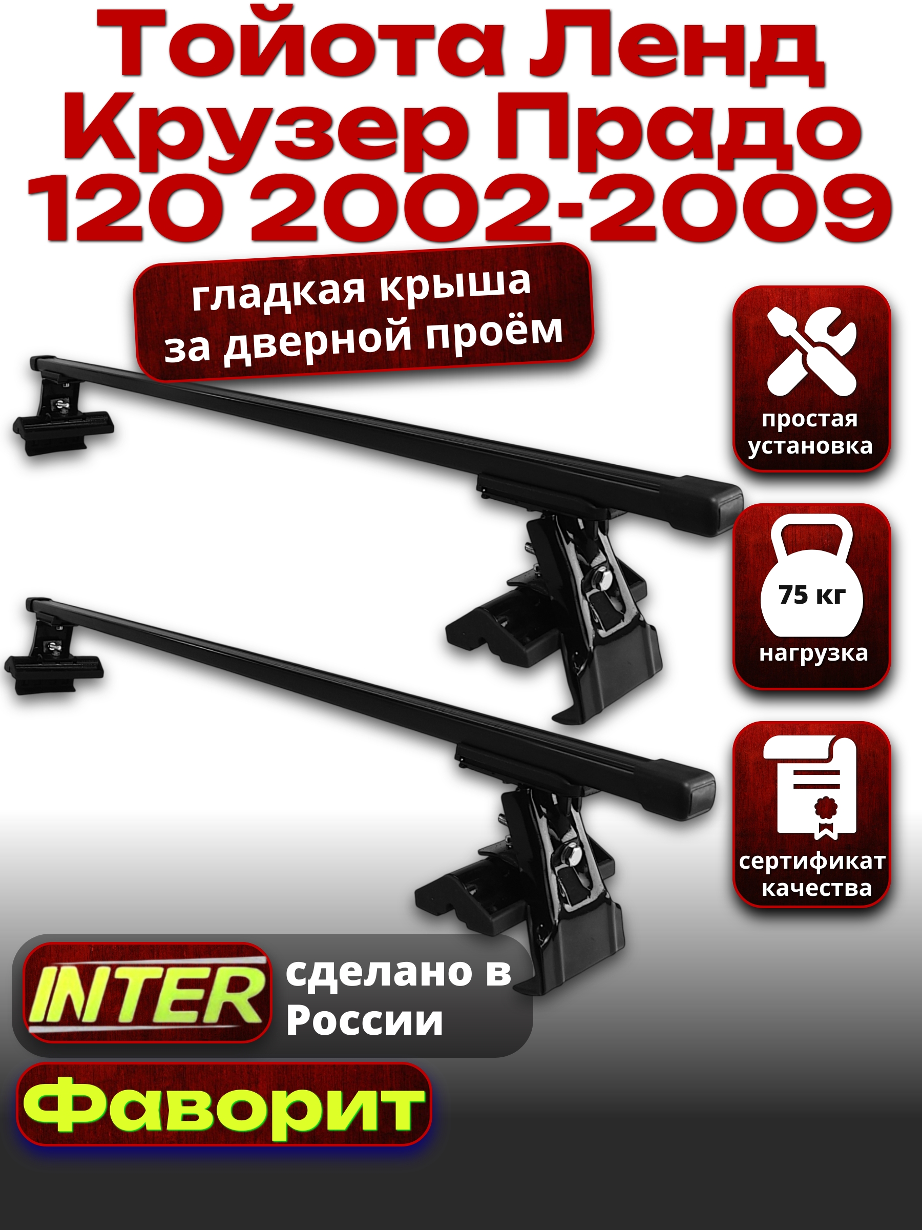 Багажник на крышу INTER D-1 для Тойота Ленд Крузер Прадо 120 2002-2009 — разработка российского производителя. Если вы подбираете недорогой и качественный багажник для своего автомобиля — это то, что вам необходимо.