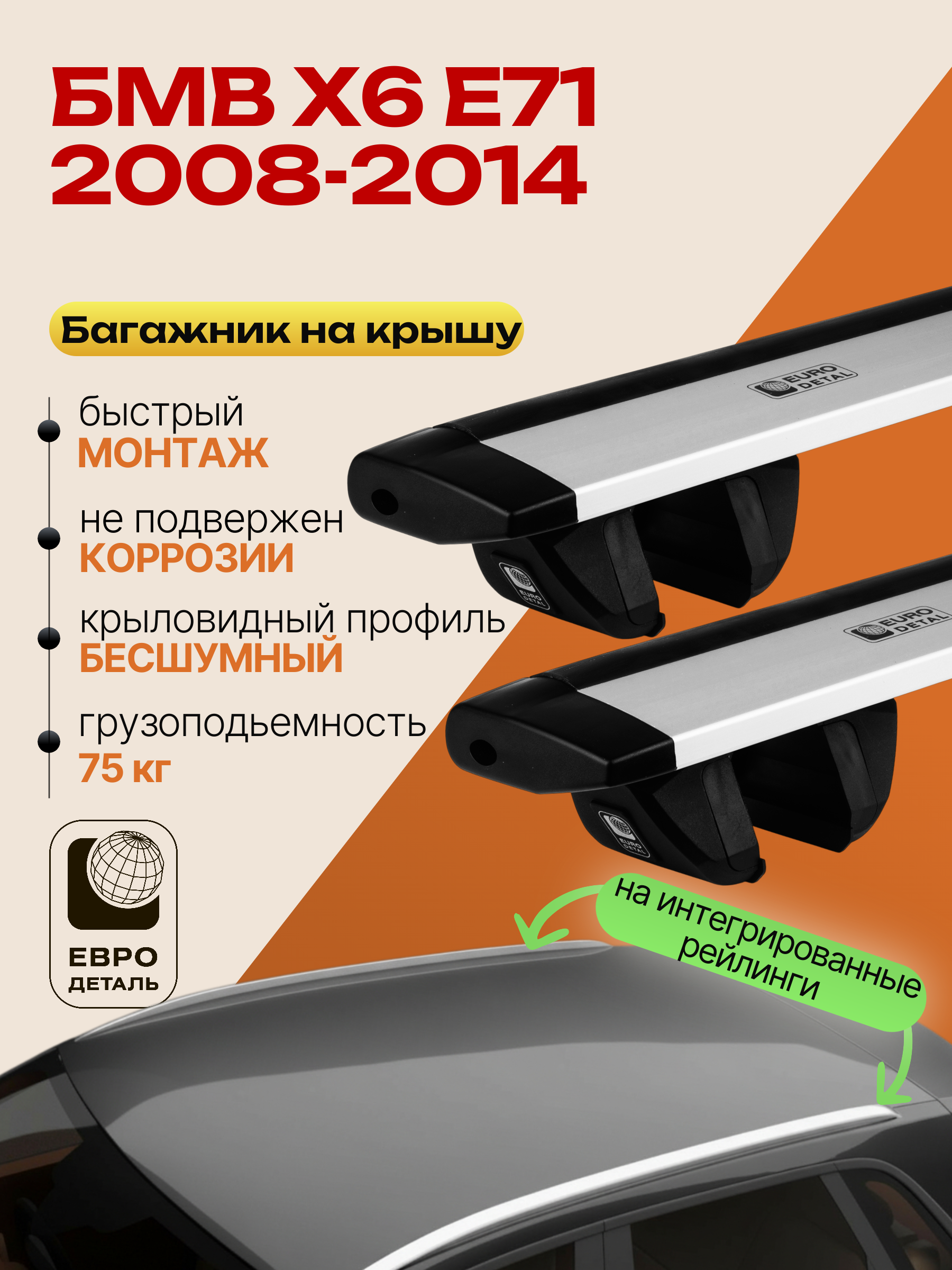 Багажник на крышу ЕвроДеталь Compact для БМВ Х6 Е71 2008-2014 (Рейлинги без просвета) — это качественное и доступное решение для перевозки грузов, разработанное российским производителем. Идеален для тех, кто ищет надежный и недорогой багажник для своего автомобиля.