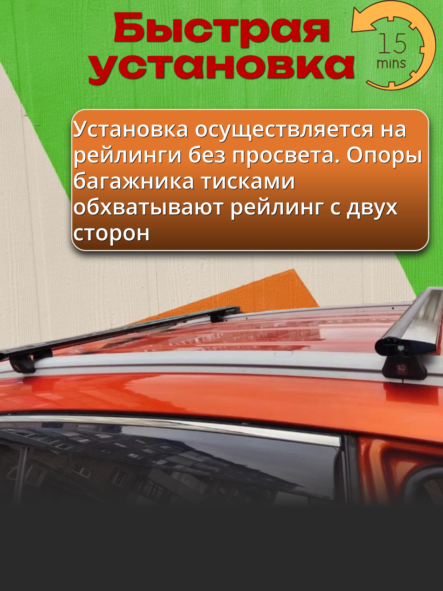 Подходит на автомобили с интегрированными рейлингами (Без просвета между крышей и рейлингами). Установка осуществляется путём затягивания на рейлинги, а защищающие резиновые подкладки дарят бережное отношение к поверхности крыши и обеспечивают плотное прилегание.