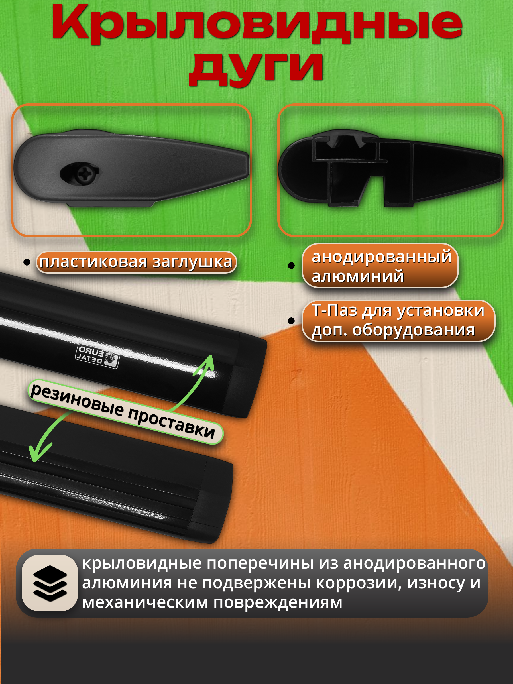 Конструкция состоит из двух крыловидных дуг, выполненных из лёгкого алюминиевого профиля, обеспечивающие самый низкий уровень шума благодаря крыловидному сечению, которые устанавливаются на крыше автомобиля с помощью специальных опор. Торцевые части закрыты пластиковыми заглушками, что придает конструкции аккуратный внешний вид.