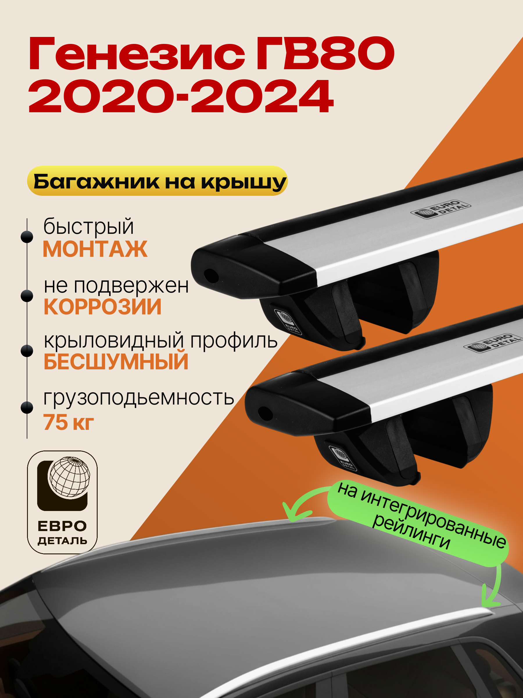 Багажник на крышу ЕвроДеталь Compact для Генезис ГВ80 2020-2024 — это качественное и доступное решение для перевозки грузов, разработанное российским производителем. Идеален для тех, кто ищет надежный и недорогой багажник для своего автомобиля.