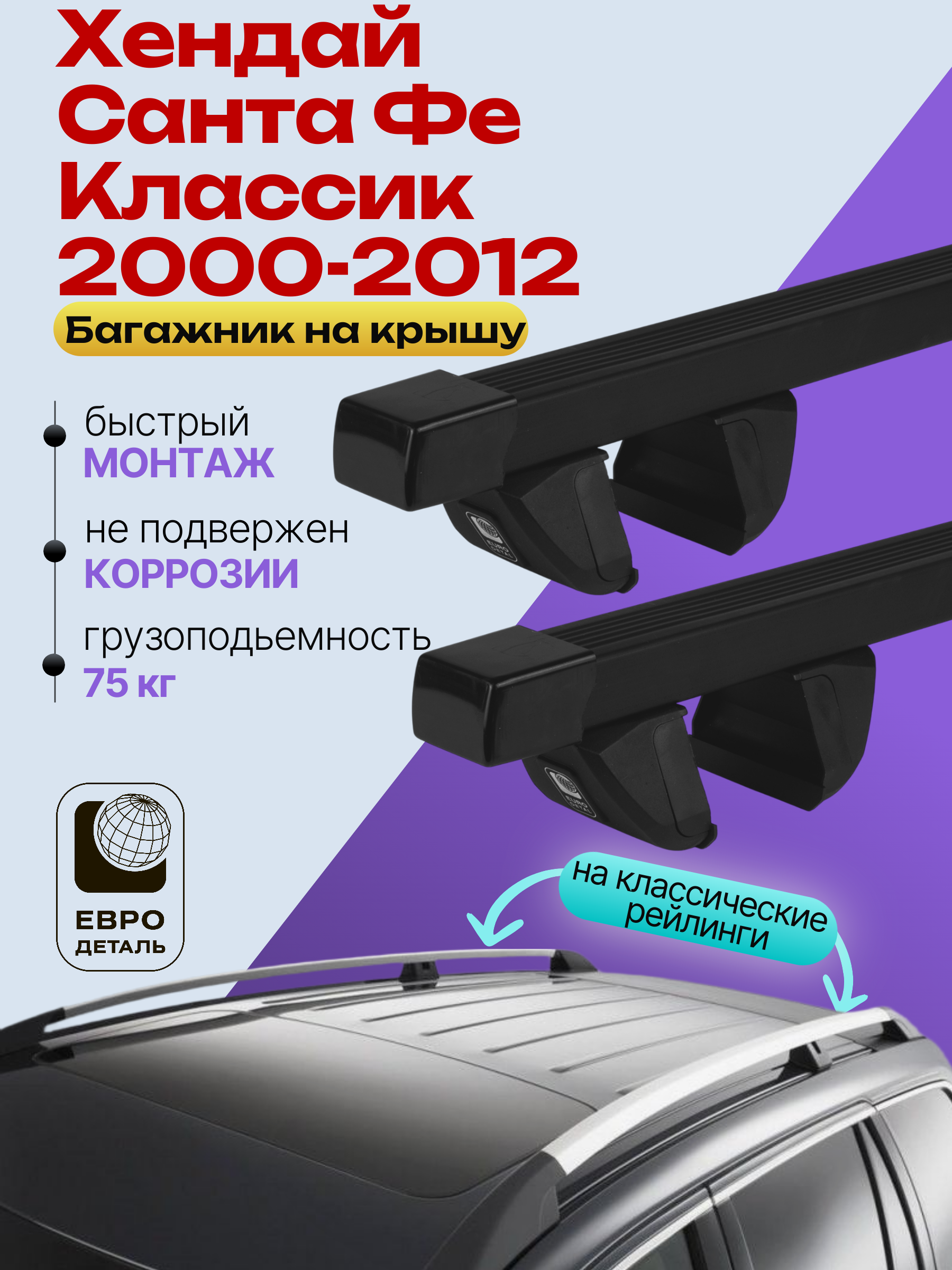 Багажник на крышу ЕвроДеталь Compact для Хендай Санта Фе Классик 2000-2012 — это качественное и доступное решение для перевозки грузов, разработанное российским производителем. Идеален для тех, кто ищет надежный и недорогой багажник для своего автомобиля.