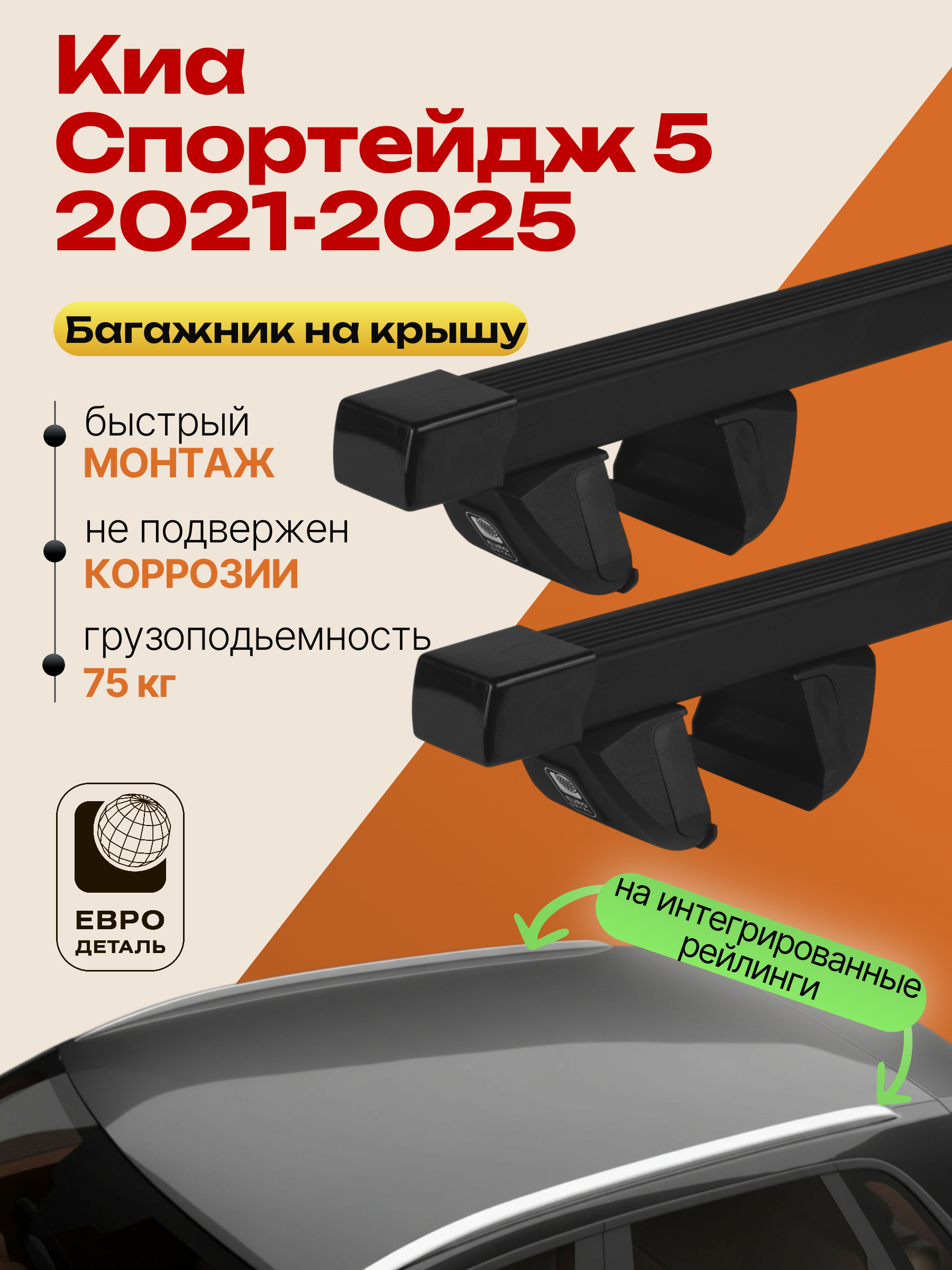 Багажник на крышу ЕвроДеталь Compact для Киа Спортейдж 5 2021-2025 (Рейлинги без просвета) — это качественное и доступное решение для перевозки грузов, разработанное российским производителем. Идеален для тех, кто ищет надежный и недорогой багажник для своего автомобиля.