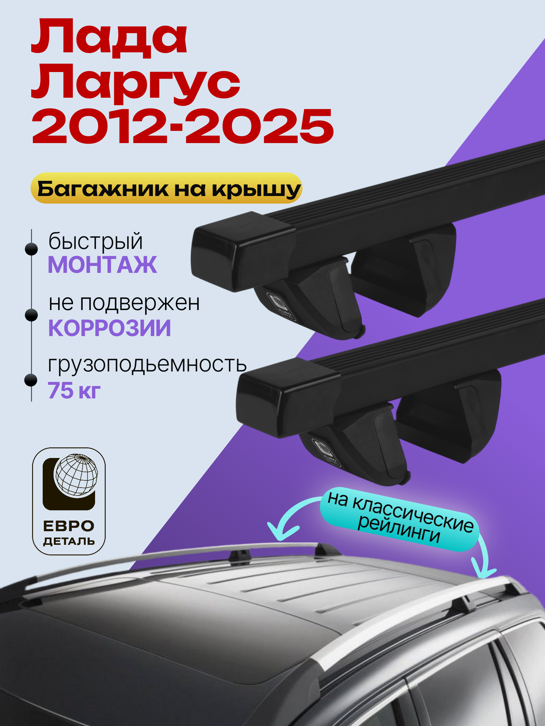 Багажник на крышу ЕвроДеталь Compact для Лада Ларгус 2012-2022 (С рейлингами) — это качественное и доступное решение для перевозки грузов, разработанное российским производителем. Идеален для тех, кто ищет надежный и недорогой багажник для своего автомобиля.