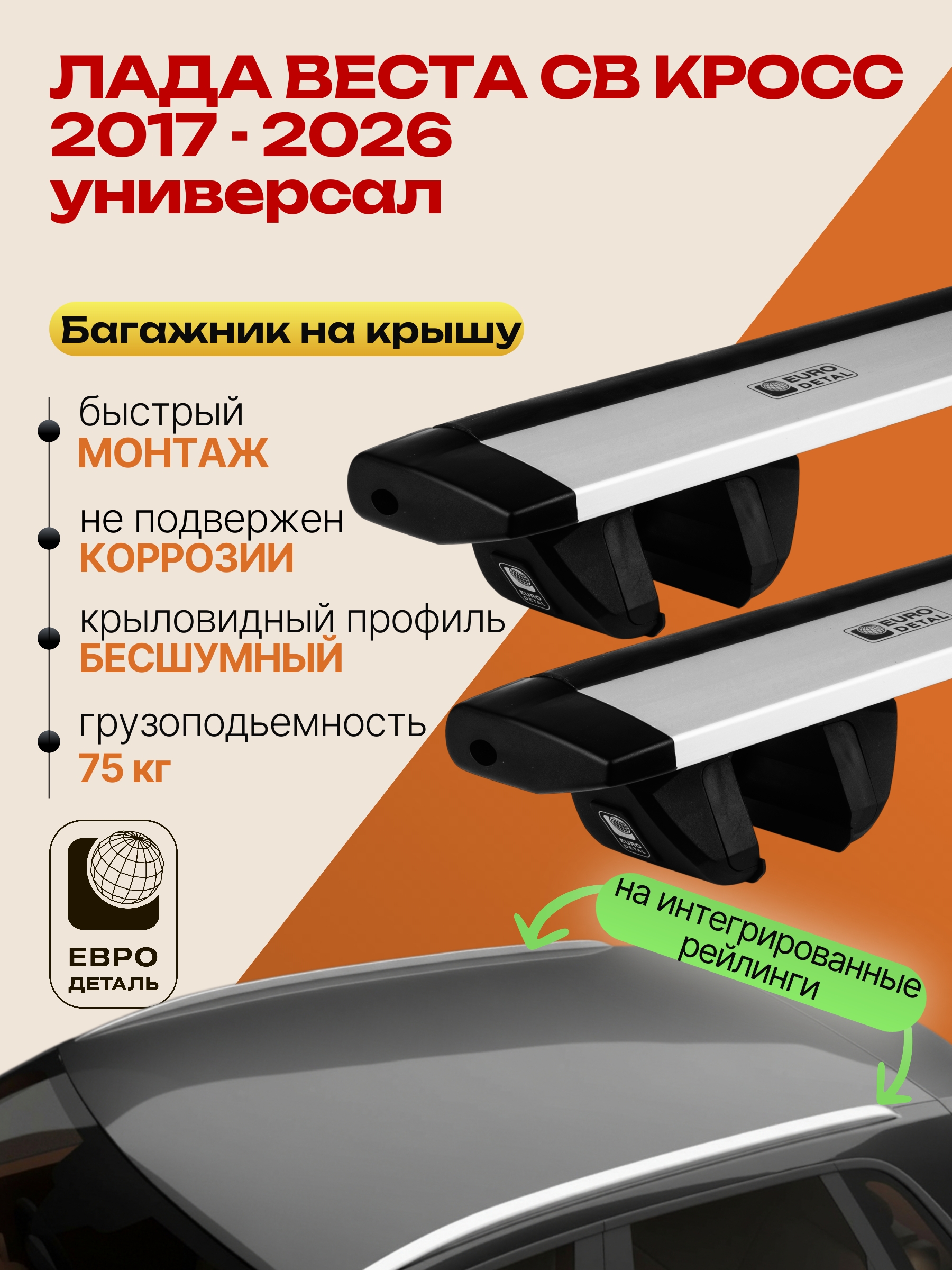 Багажник на крышу ЕвроДеталь Compact для Лада Веста СВ Кросс универсал 2017-2026 (Рейлинги без просвета) — это качественное и доступное решение для перевозки грузов, разработанное российским производителем. Идеален для тех, кто ищет надежный и недорогой багажник для своего автомобиля.