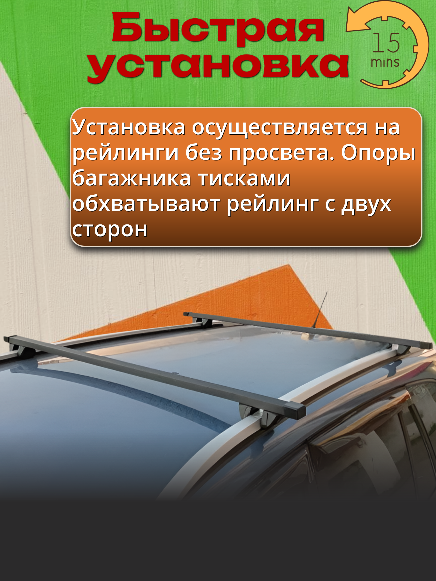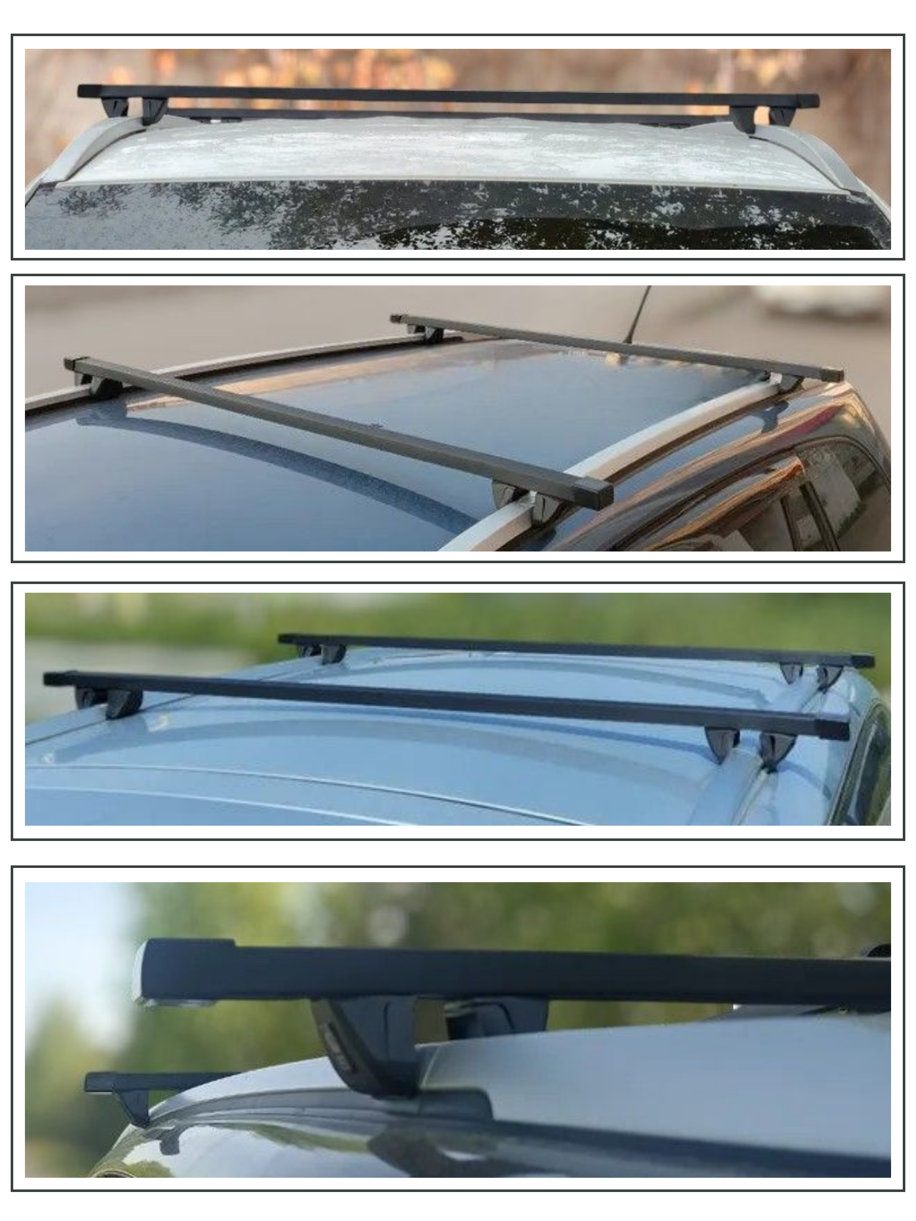 Подходит на автомобили с интегрированными рейлингами (Без просвета между крышей и рейлингами). Установка осуществляется путём затягивания на рейлинги, а защищающие резиновые подкладки дарят бережное отношение к поверхности крыши и обеспечивают плотное прилегание.