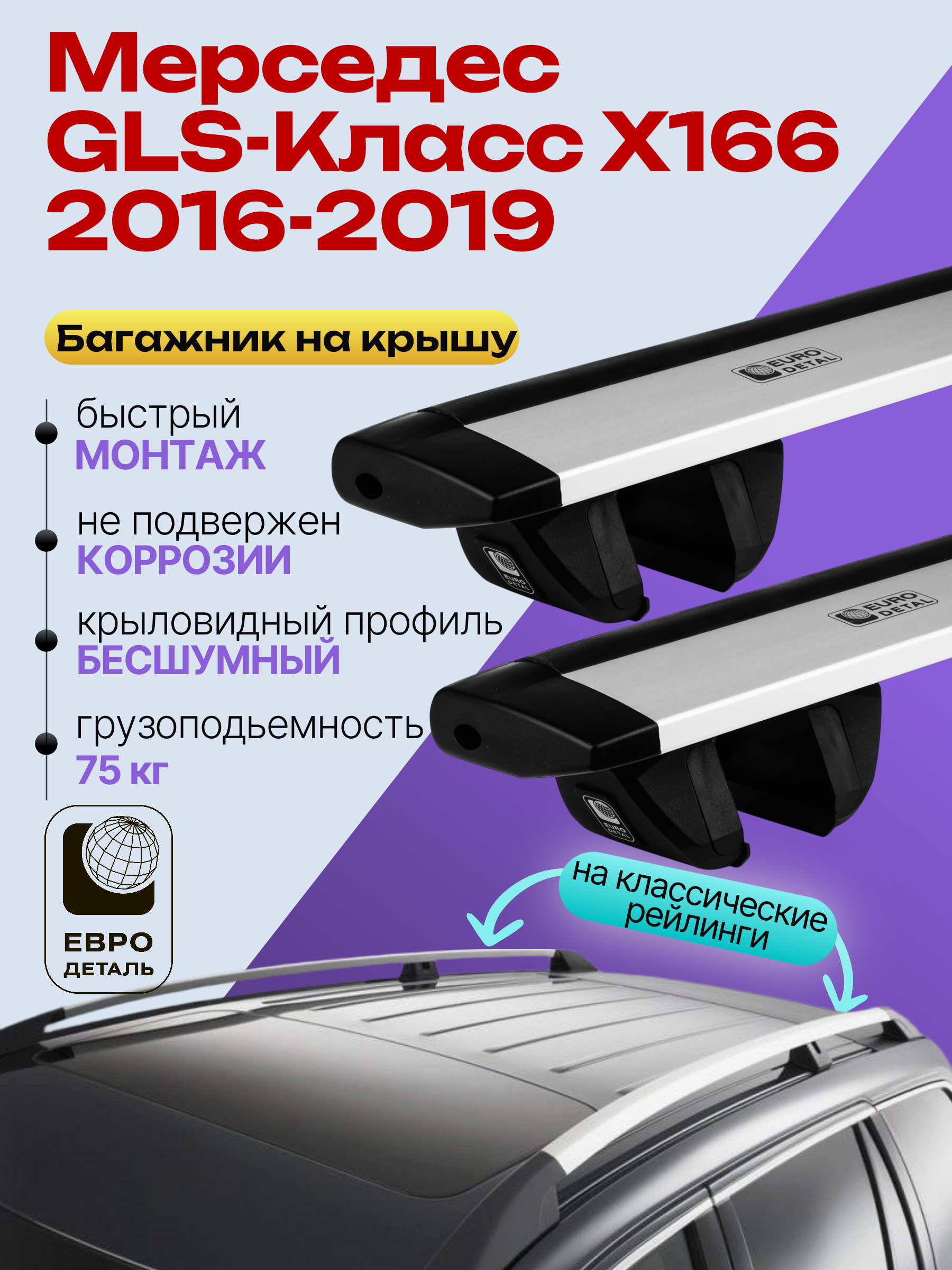 Багажник на крышу ЕвроДеталь Compact для Мерседес GLS-Класс X166 2016-2019 — это качественное и доступное решение для перевозки грузов, разработанное российским производителем. Идеален для тех, кто ищет надежный и недорогой багажник для своего автомобиля.