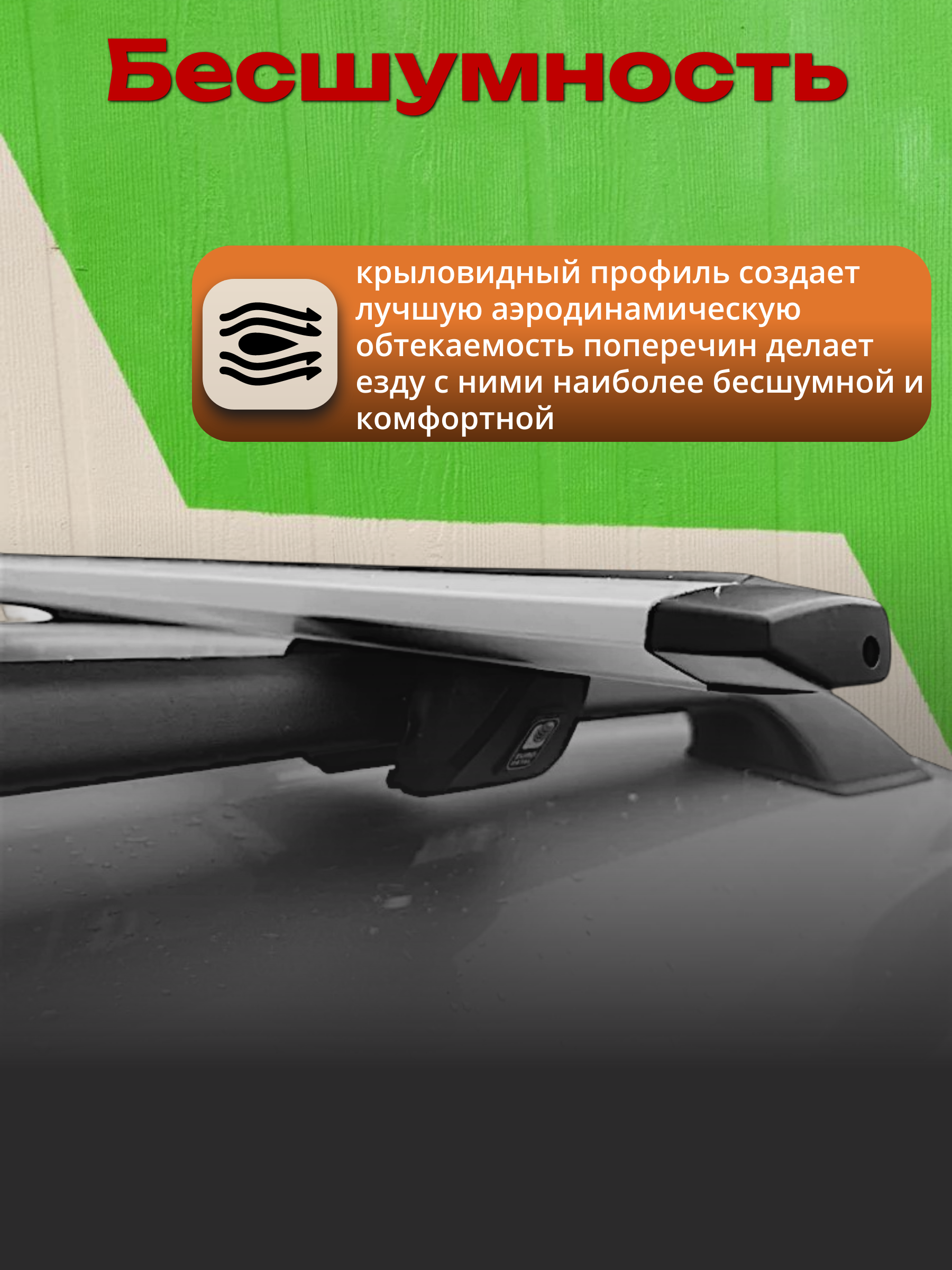 Конструкция состоит из двух крыловидных дуг, выполненных из лёгкого алюминиевого профиля, обеспечивающие самый низкий уровень шума благодаря крыловидному сечению, которые устанавливаются на крыше автомобиля с помощью специальных опор. Торцевые части закрыты пластиковыми заглушками, что придает конструкции аккуратный внешний вид.