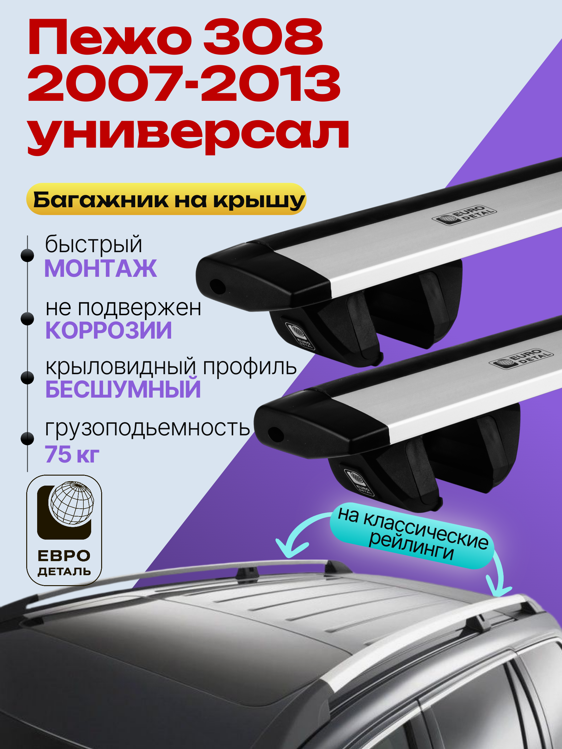 Багажник на крышу ЕвроДеталь Compact для Пежо 308 универсал 2007-2013 — это качественное и доступное решение для перевозки грузов, разработанное российским производителем. Идеален для тех, кто ищет надежный и недорогой багажник для своего автомобиля.