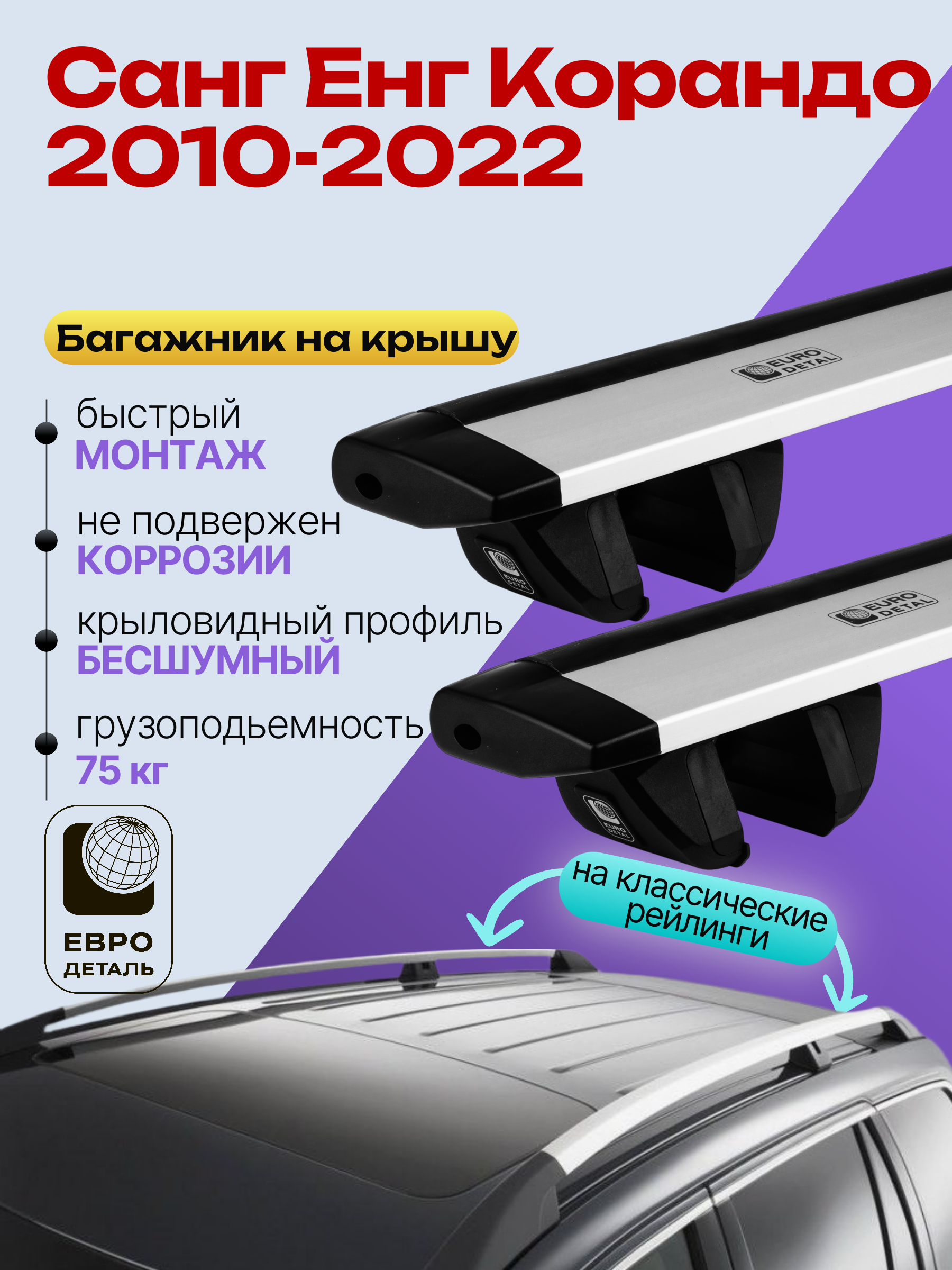 Багажник на крышу ЕвроДеталь Compact для Санг Енг Корандо 2010-2022 — это качественное и доступное решение для перевозки грузов, разработанное российским производителем. Идеален для тех, кто ищет надежный и недорогой багажник для своего автомобиля.