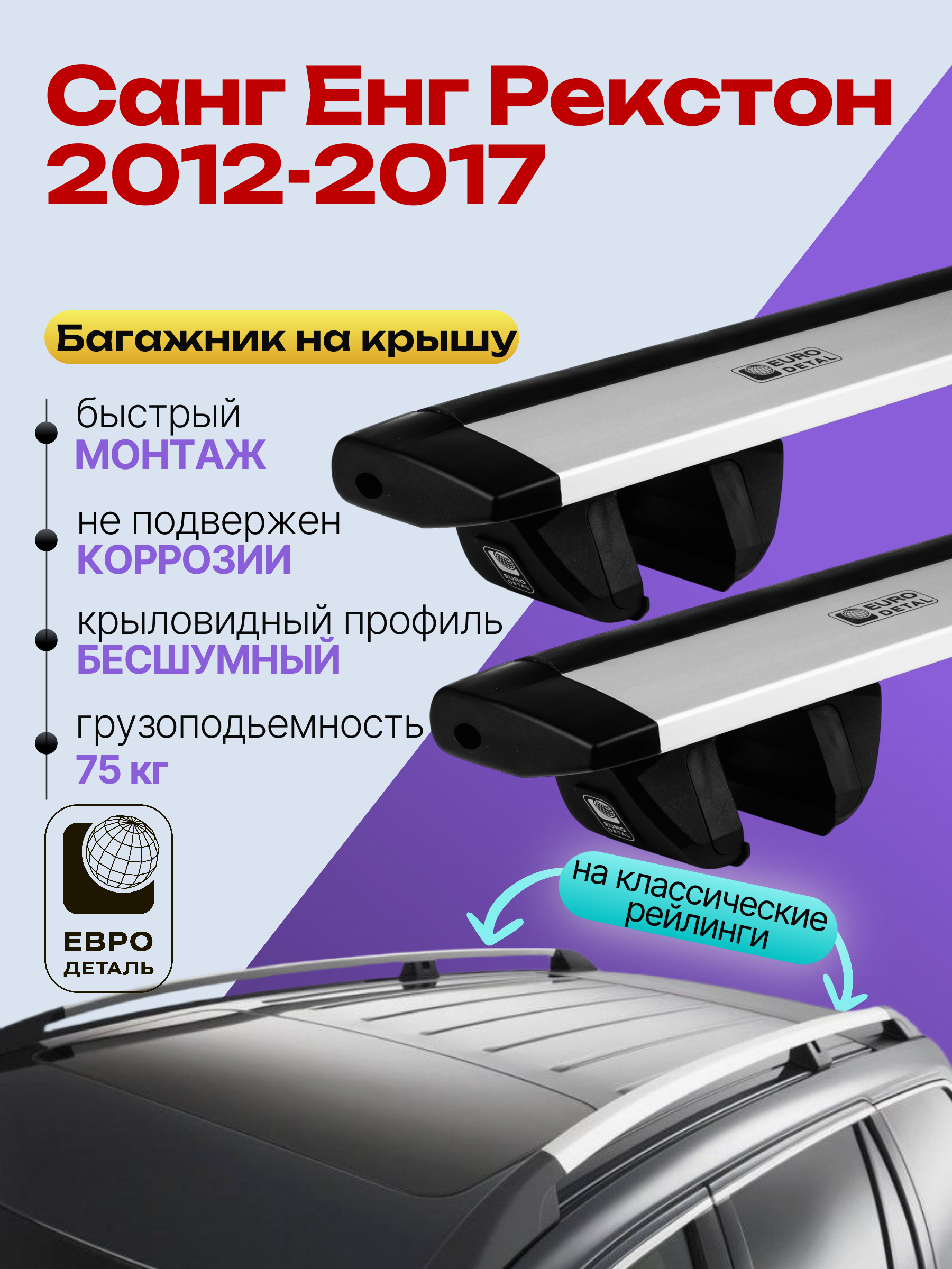 Багажник на крышу ЕвроДеталь Compact для Санг Енг Рекстон 3 2012-2017 — это качественное и доступное решение для перевозки грузов, разработанное российским производителем. Идеален для тех, кто ищет надежный и недорогой багажник для своего автомобиля.