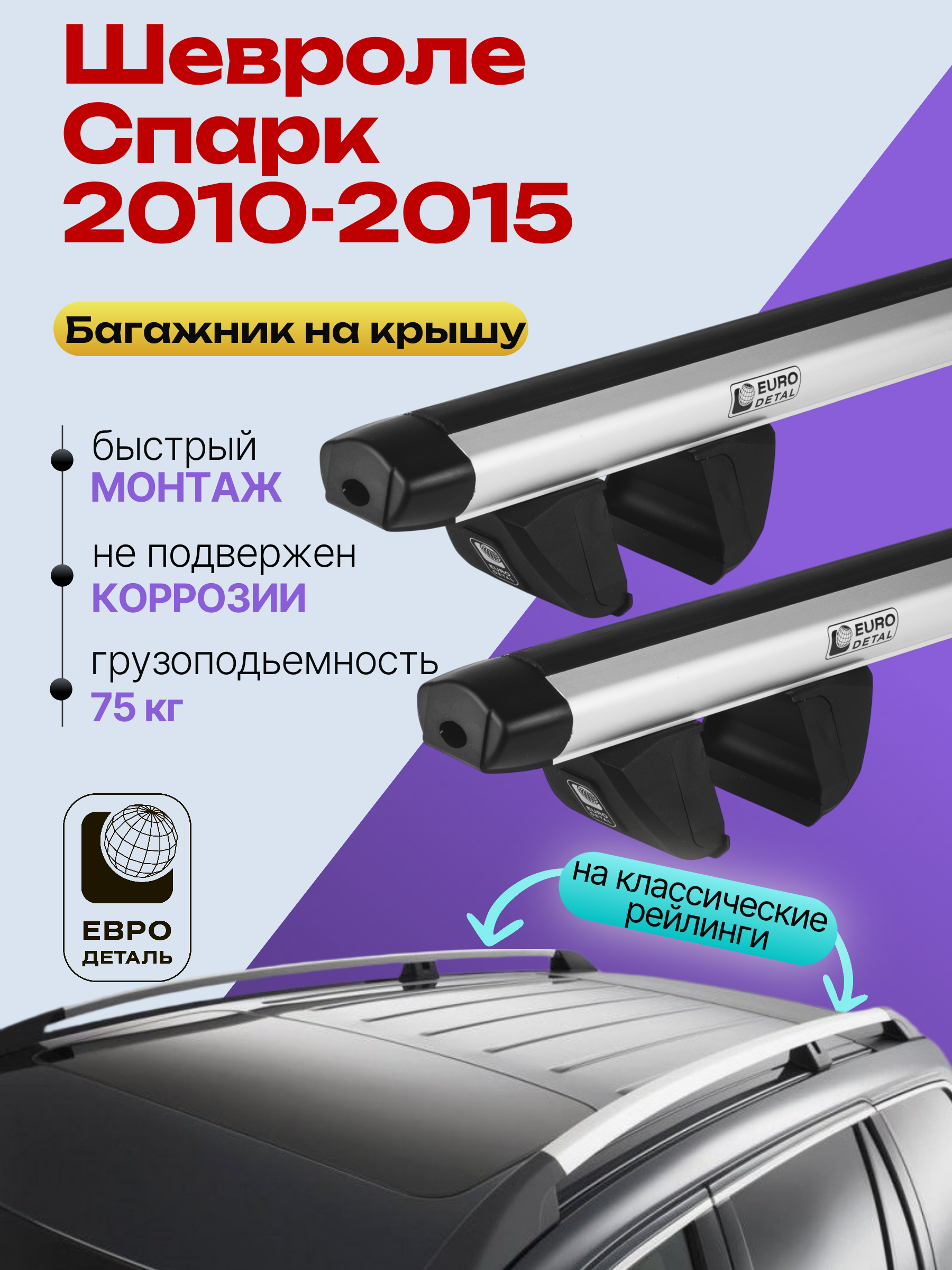 Багажник на крышу ЕвроДеталь Compact для Шевроле Спарк 2010-2015 — это качественное и доступное решение для перевозки грузов, разработанное российским производителем. Идеален для тех, кто ищет надежный и недорогой багажник для своего автомобиля.