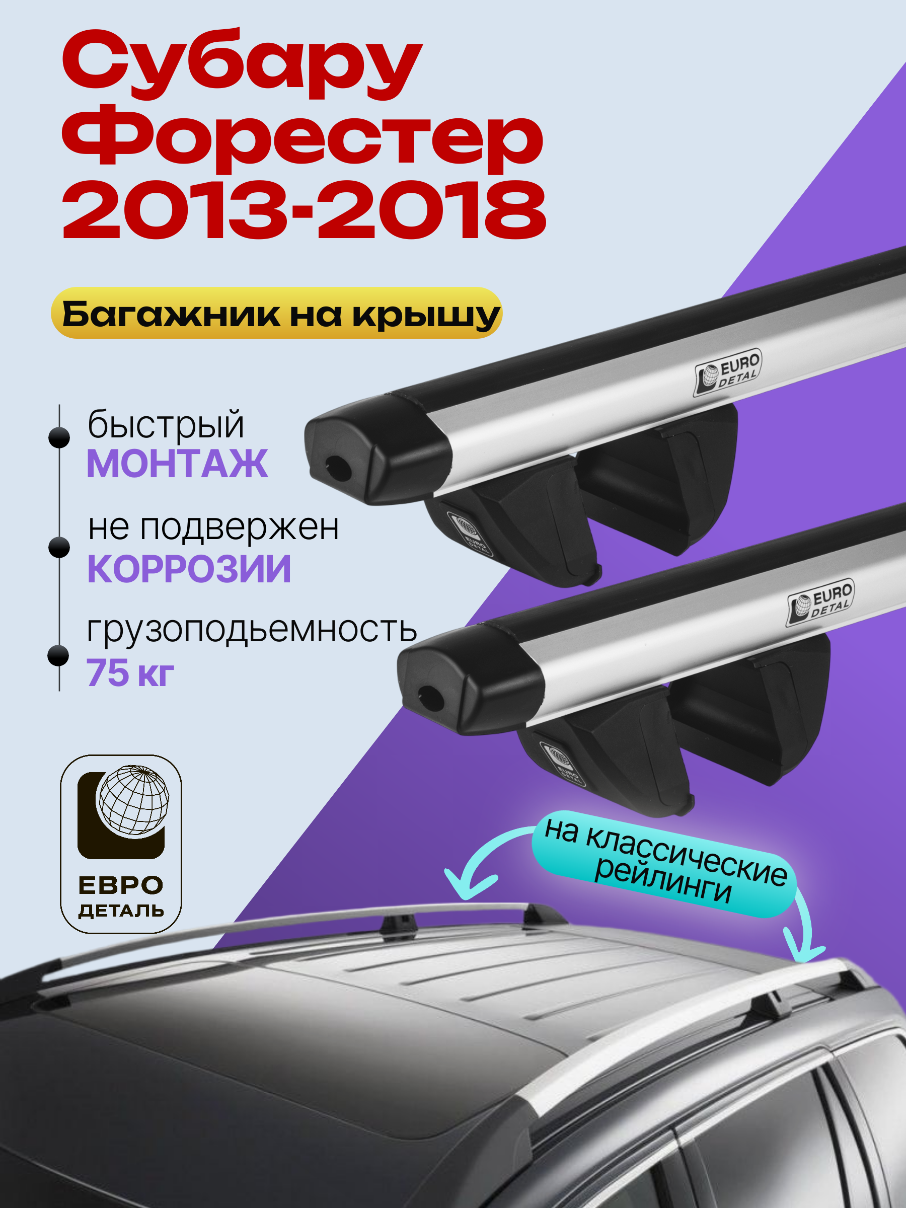 Багажник на крышу ЕвроДеталь Compact для Субару Форестер 2013-2018 (Рейлинги с просветом) — это качественное и доступное решение для перевозки грузов, разработанное российским производителем. Идеален для тех, кто ищет надежный и недорогой багажник для своего автомобиля.