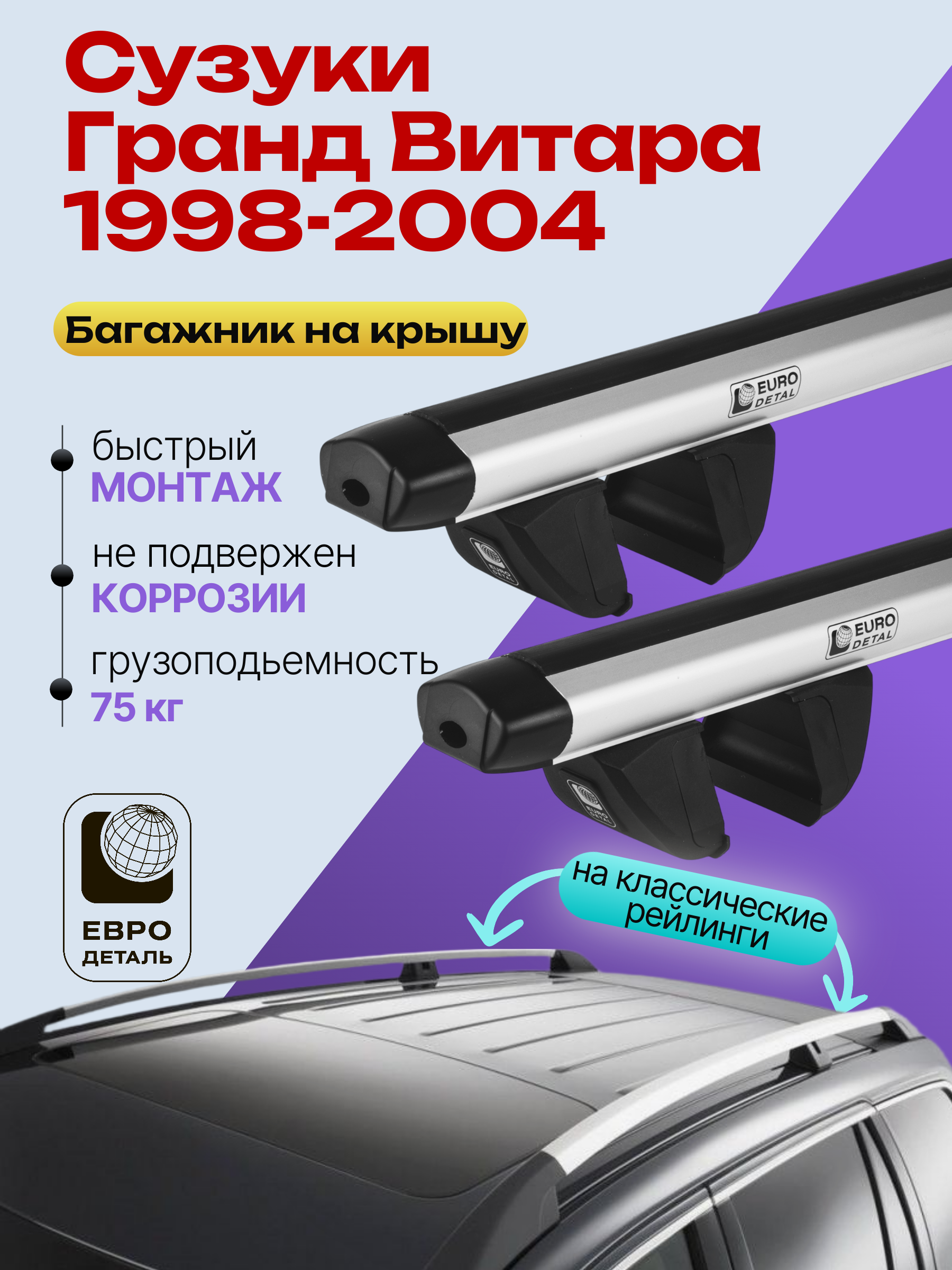 Багажник на крышу ЕвроДеталь Compact для Сузуки Гранд Витара 1998-2004 (Рейлинги с просветом) — это качественное и доступное решение для перевозки грузов, разработанное российским производителем. Идеален для тех, кто ищет надежный и недорогой багажник для своего автомобиля.