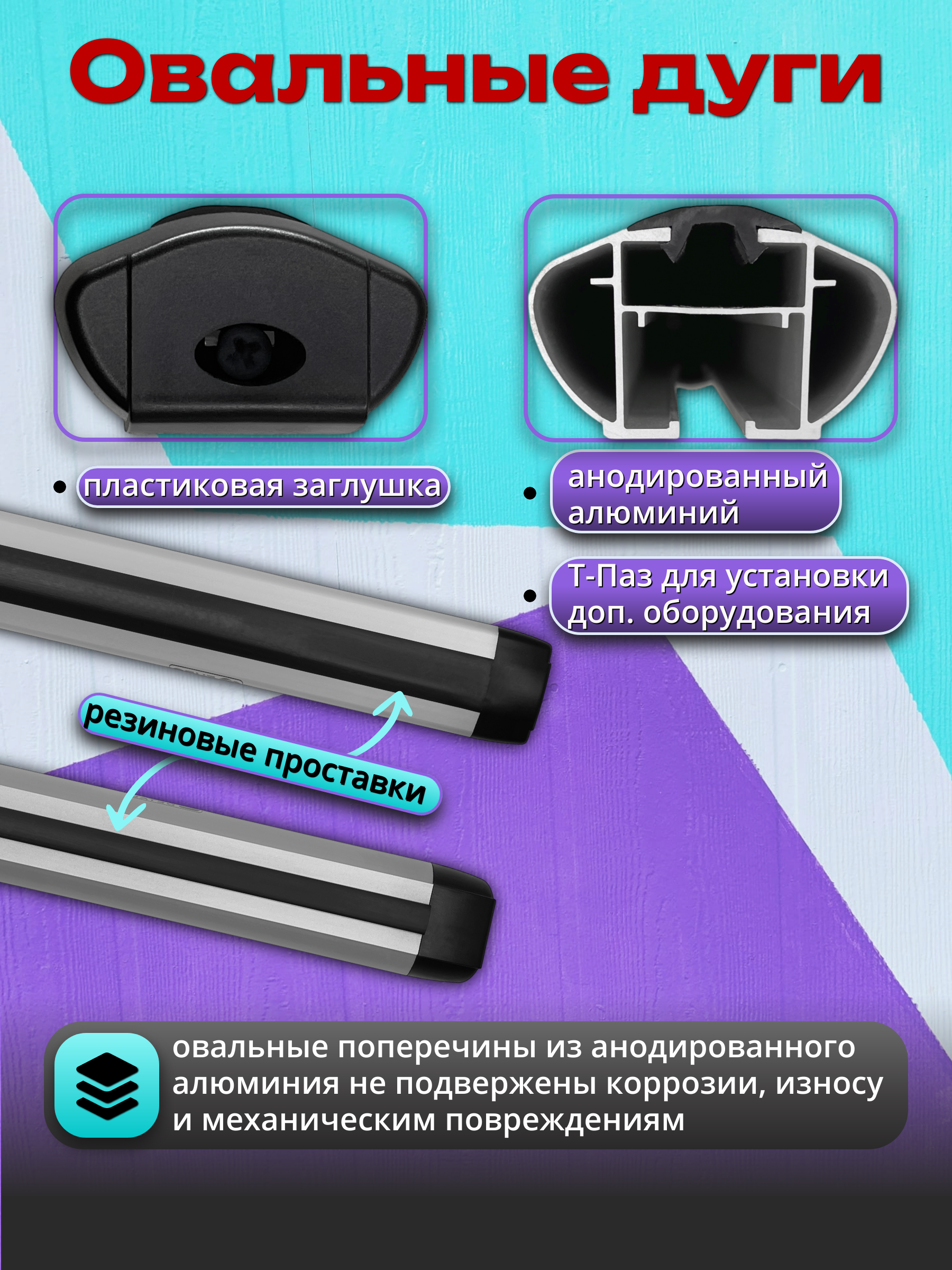 Конструкция состоит из двух аэродинамических дуг, выполненных из лёгкого алюминиевого профиля, обеспечивающие низкий уровень шума благодаря овальному сечению, которые устанавливаются на крыше автомобиля с помощью специальных опор. Торцевые части закрыты пластиковыми заглушками, что придает конструкции аккуратный внешний вид.