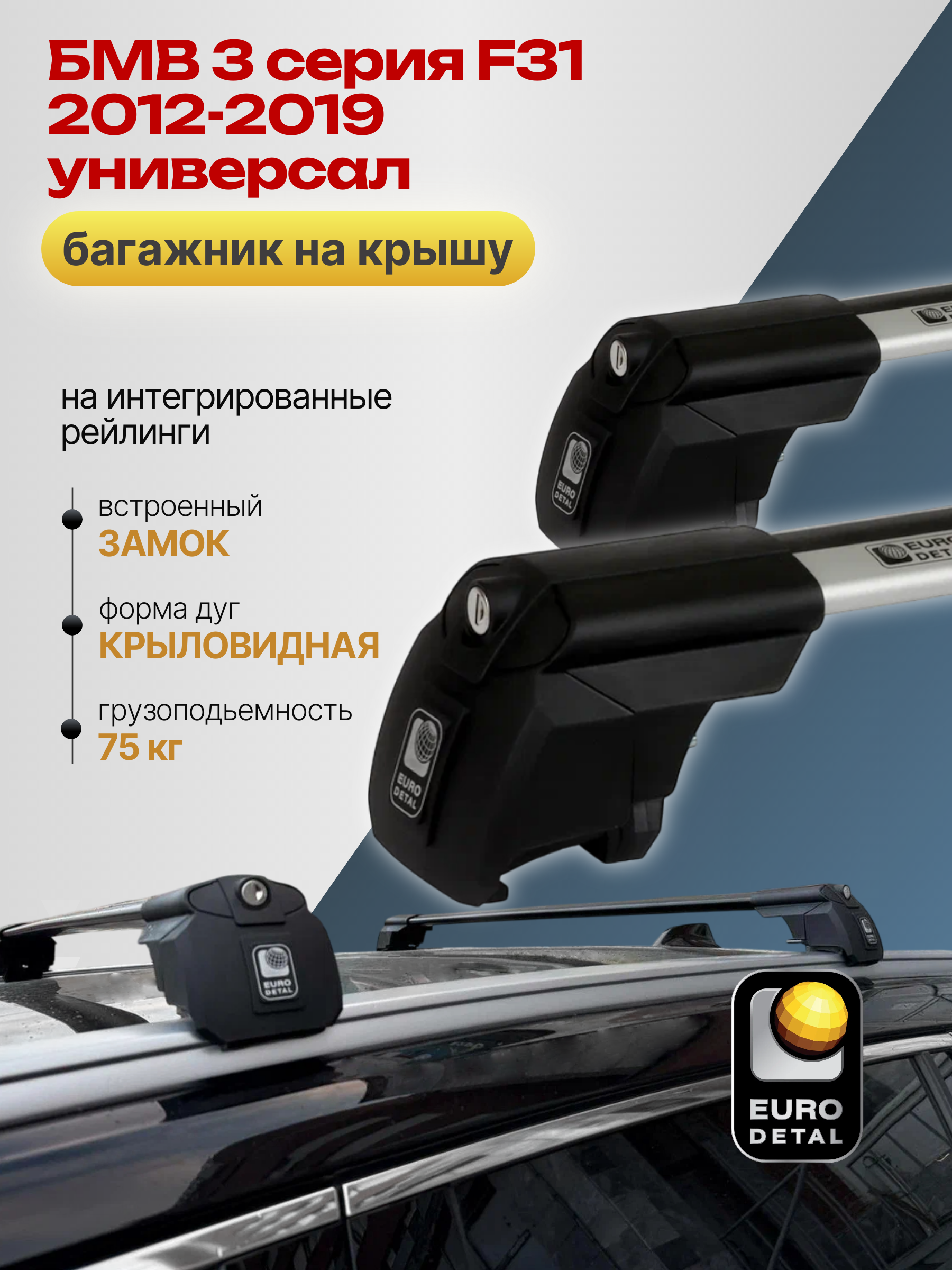Багажник на крышу ЕвроДеталь SMART I предназначен для установки на БМВ 3 серия F31 Touring универсал 2012-2019 с интегрированными рейлингами.