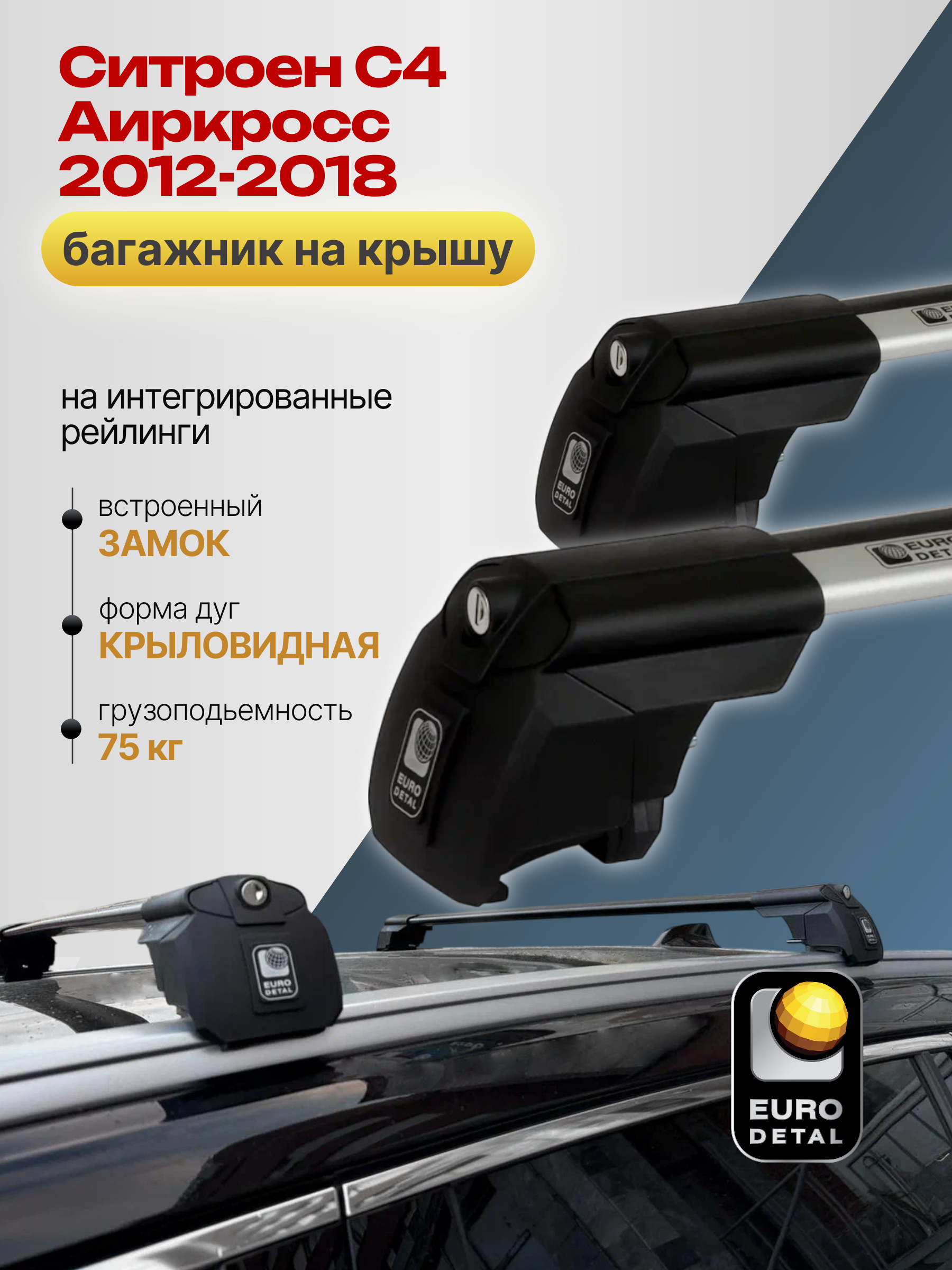 Багажник на крышу ЕвроДеталь SMART I предназначен для установки на Ситроен С4 Аиркросс 2012-2018 с интегрированными рейлингами.