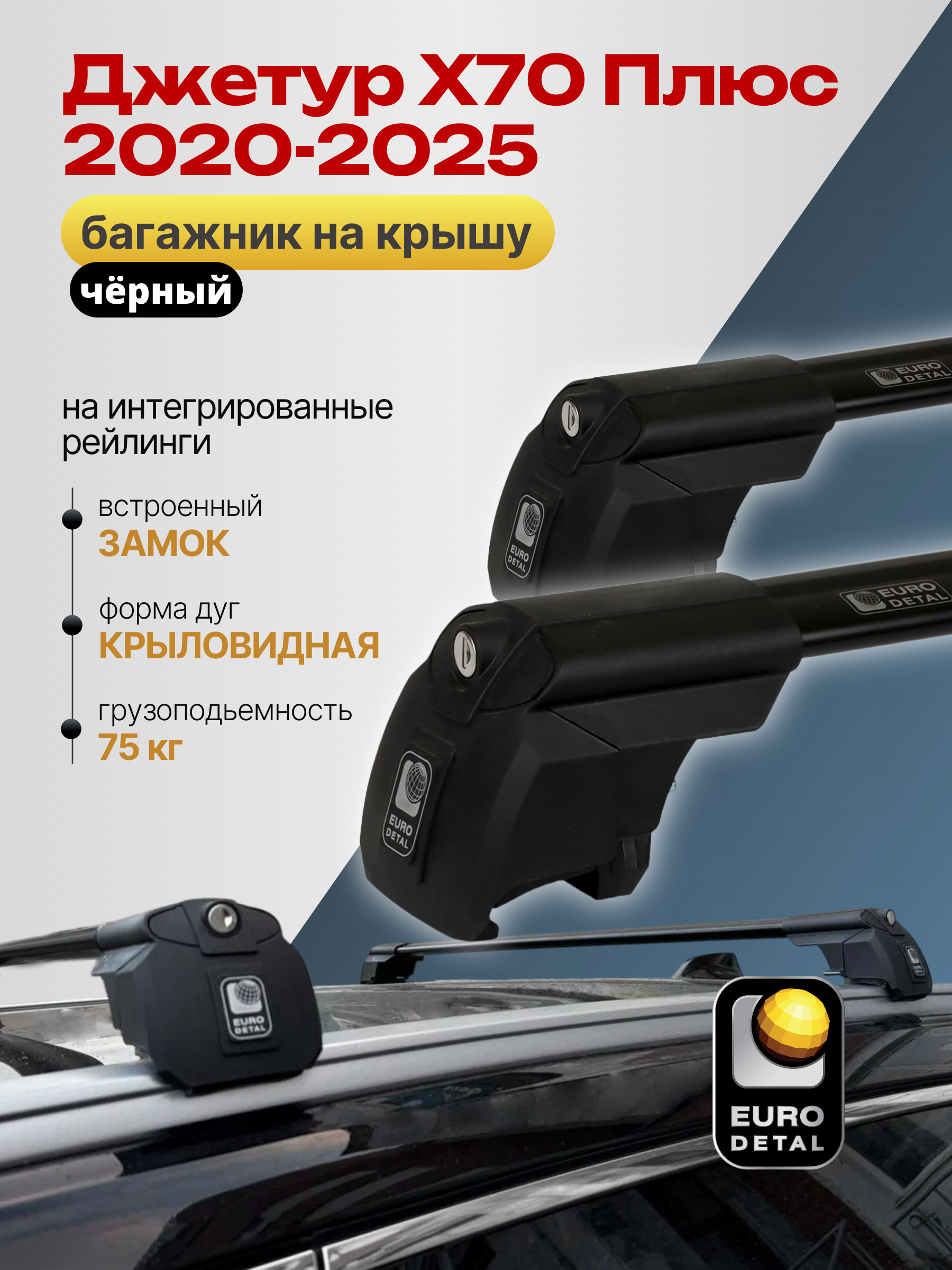 Багажник на крышу ЕвроДеталь SMART I предназначен для установки на Джетур Х70 Плюс 2020-2025 черный с интегрированными рейлингами.