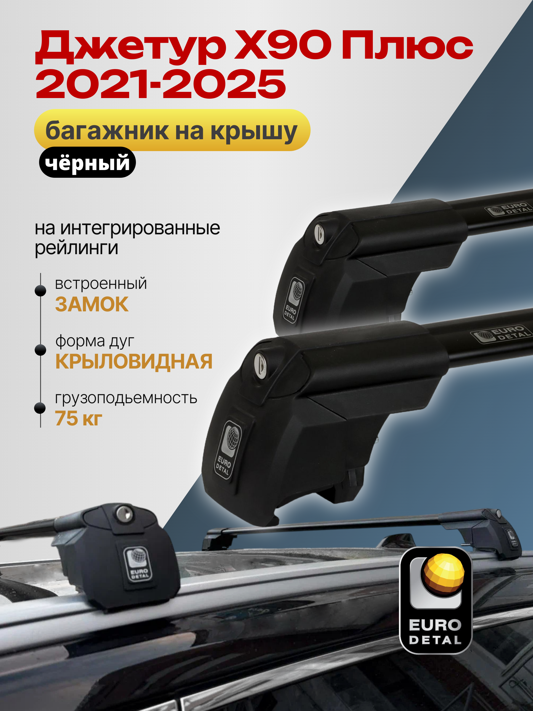 Багажник на крышу ЕвроДеталь SMART I предназначен для установки на Джетур Х90 Плюс 2021-2025 черный с интегрированными рейлингами.