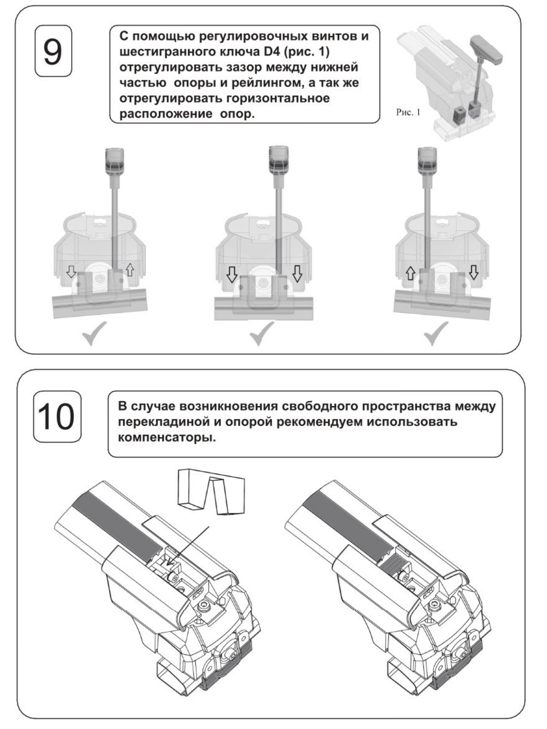 - Компенсаторы для регулировки длины перекладин