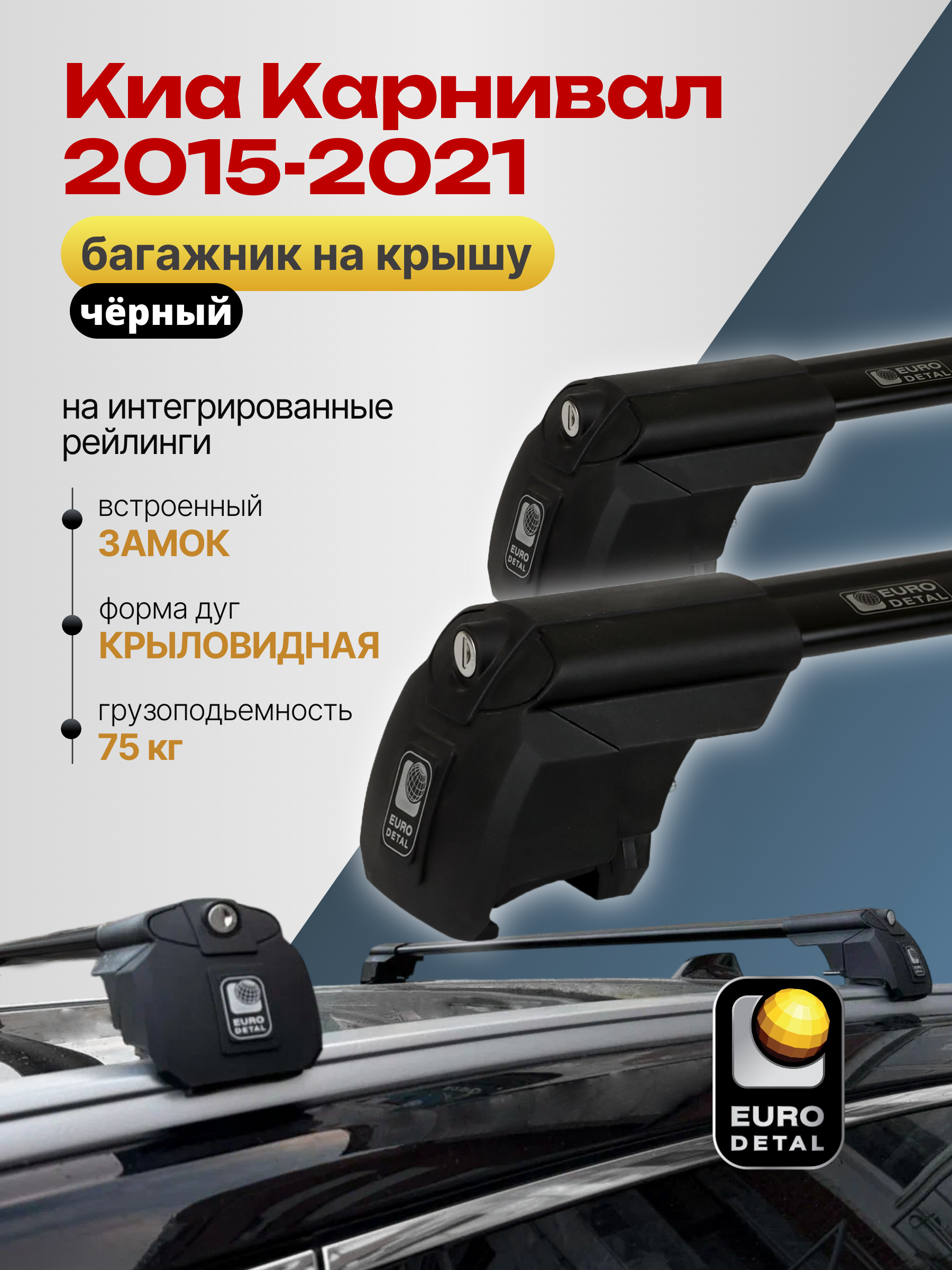 Багажник на крышу ЕвроДеталь SMART I предназначен для установки на Киа Карнивал 2015-2021 черный с интегрированными рейлингами.