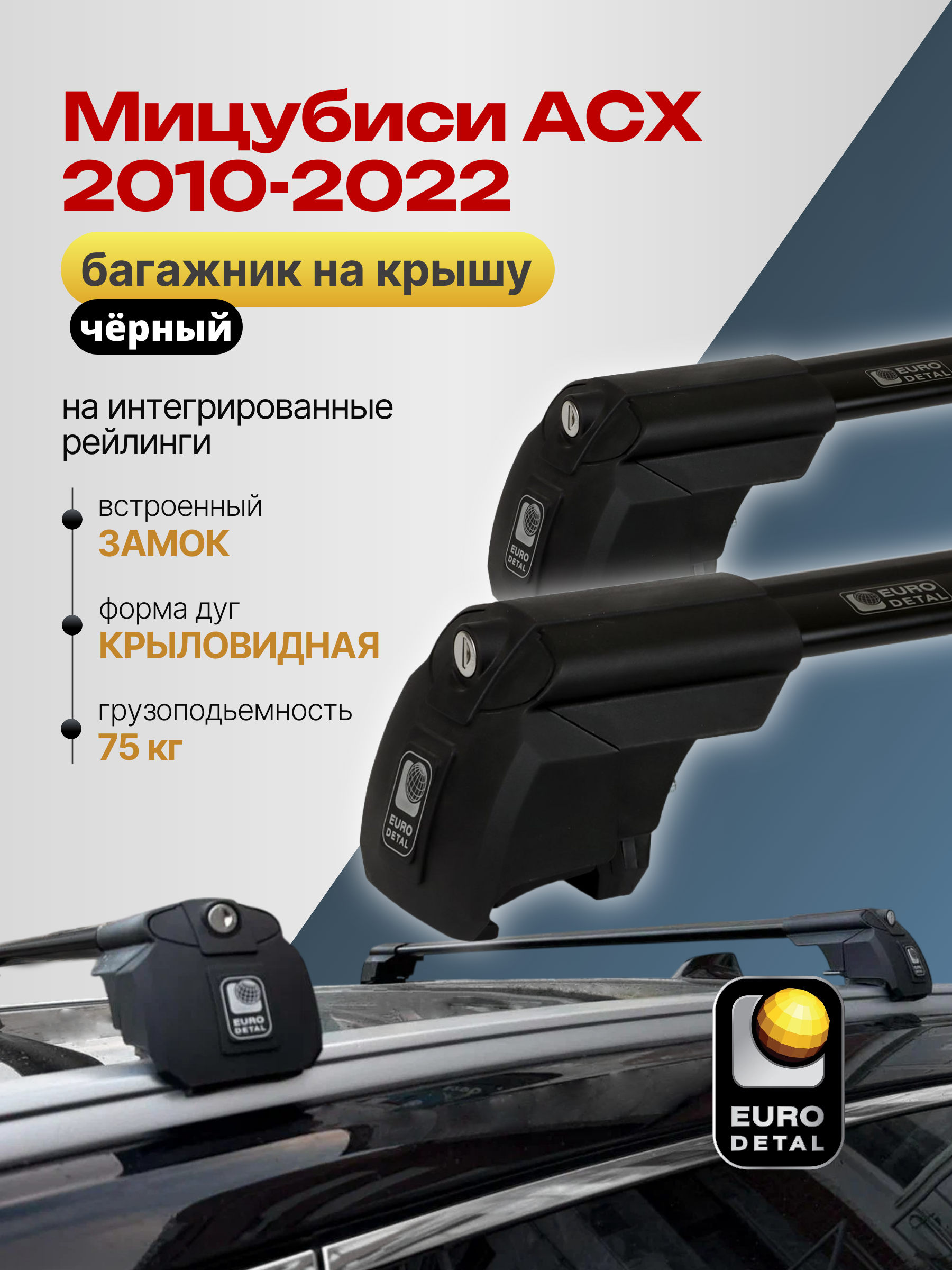 Багажник на крышу ЕвроДеталь SMART I предназначен для установки на Мицубиси АСХ 2010-2022 черный с интегрированными рейлингами.