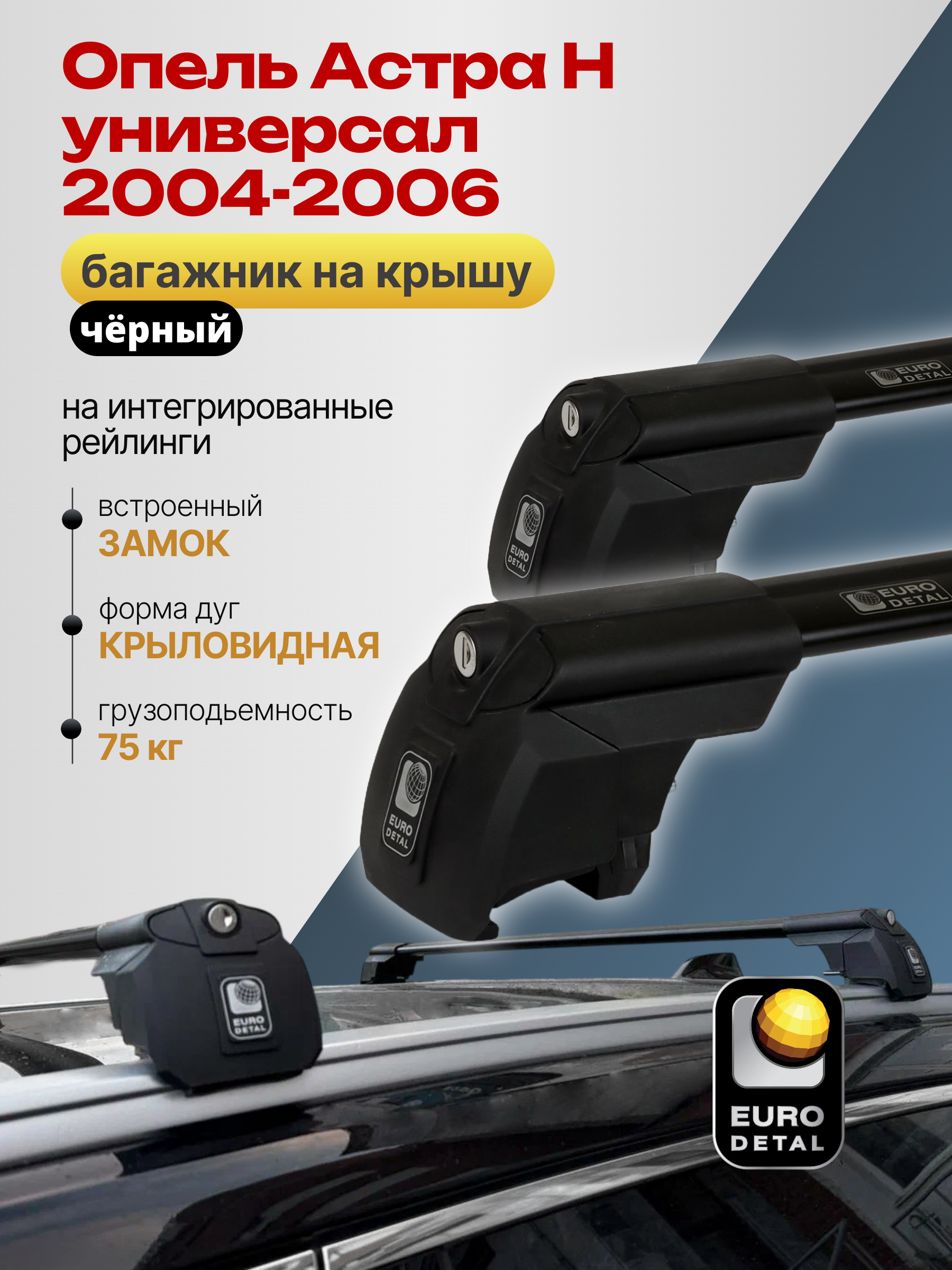 Багажник на крышу ЕвроДеталь SMART I предназначен для установки на Опель Астра Н универсал 2004-2006 черный с интегрированными рейлингами.