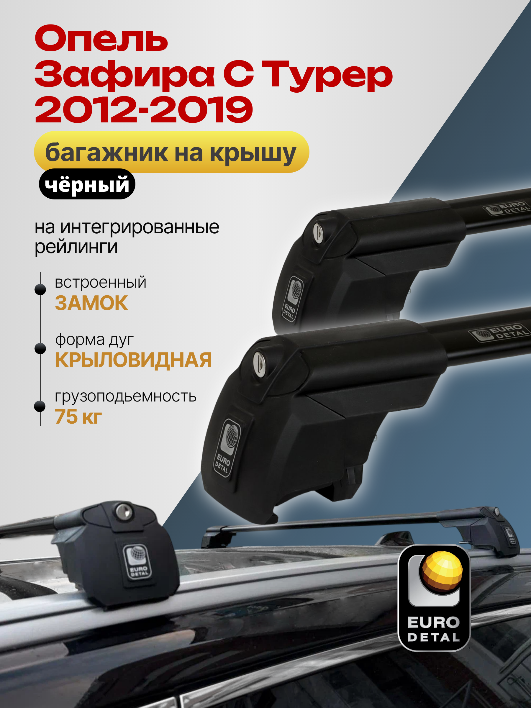 Багажник на крышу ЕвроДеталь SMART I предназначен для установки на Опель Зафира С Турер 2012-2019 черный с интегрированными рейлингами.