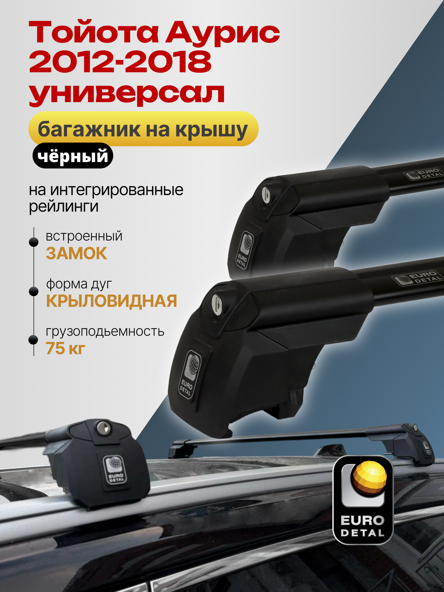 Багажник на крышу ЕвроДеталь SMART I предназначен для установки на Тойота Аурис универсал 2012-2018 черный с интегрированными рейлингами.