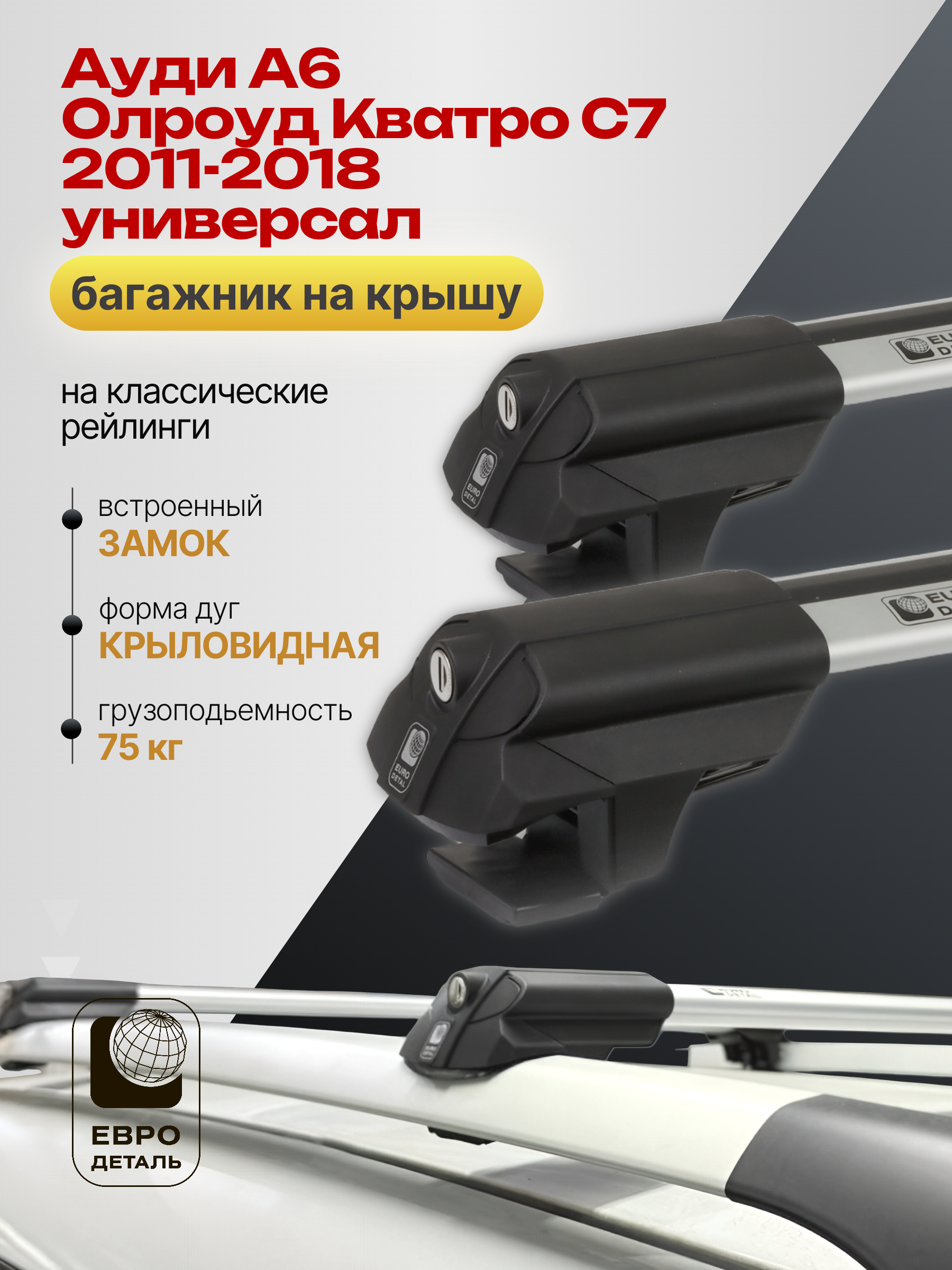 Багажник на крышу ЕвроДеталь SMART S предназначен для установки на Ауди А6 Олроуд Кватро С7 универсал 2011-2018 со стандартными рейлингами.