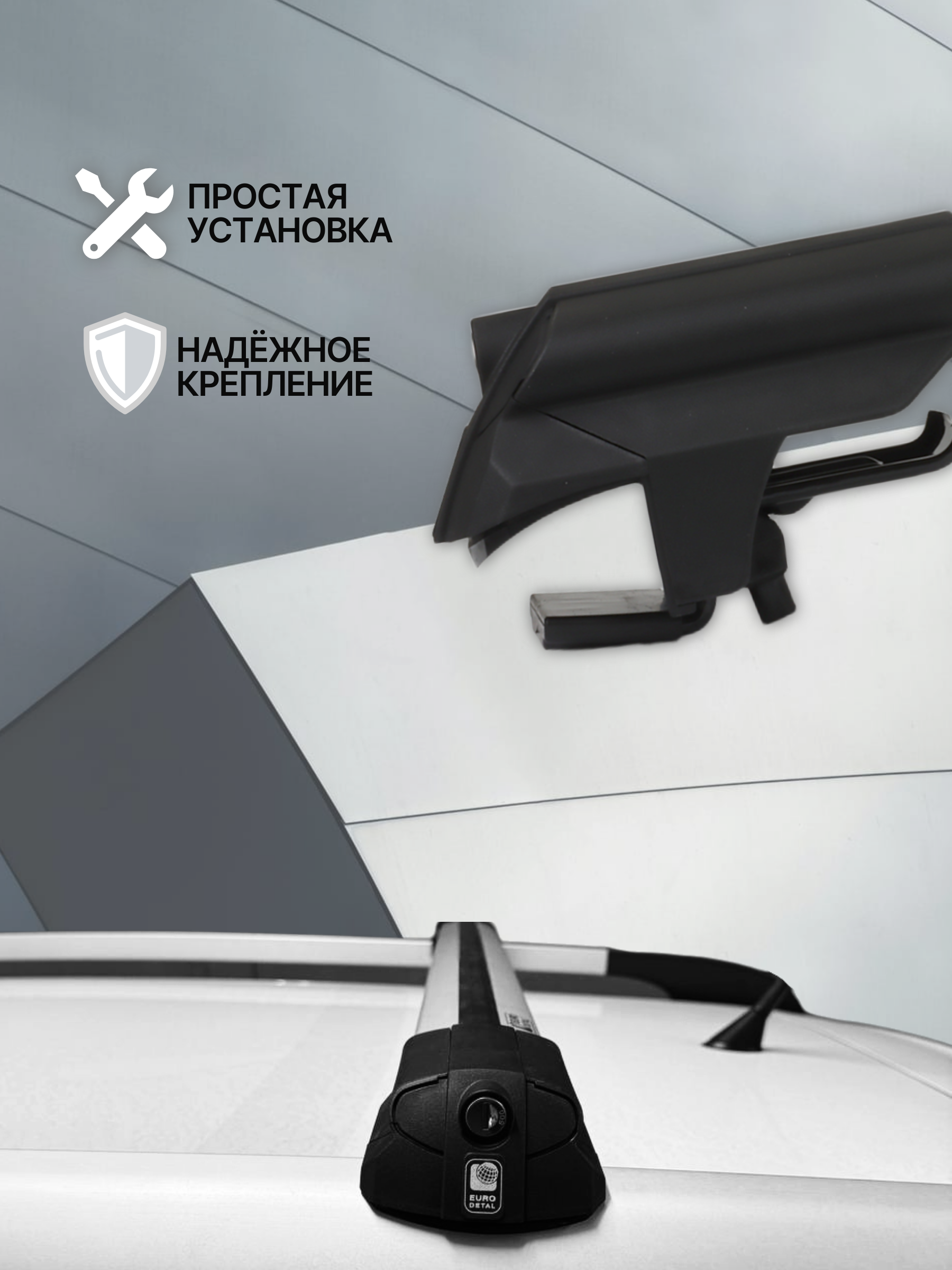 - Багажник Евродеталь SMART S (2 аэродинамические перекладины, 4 опоры для стандартных рейлингов)